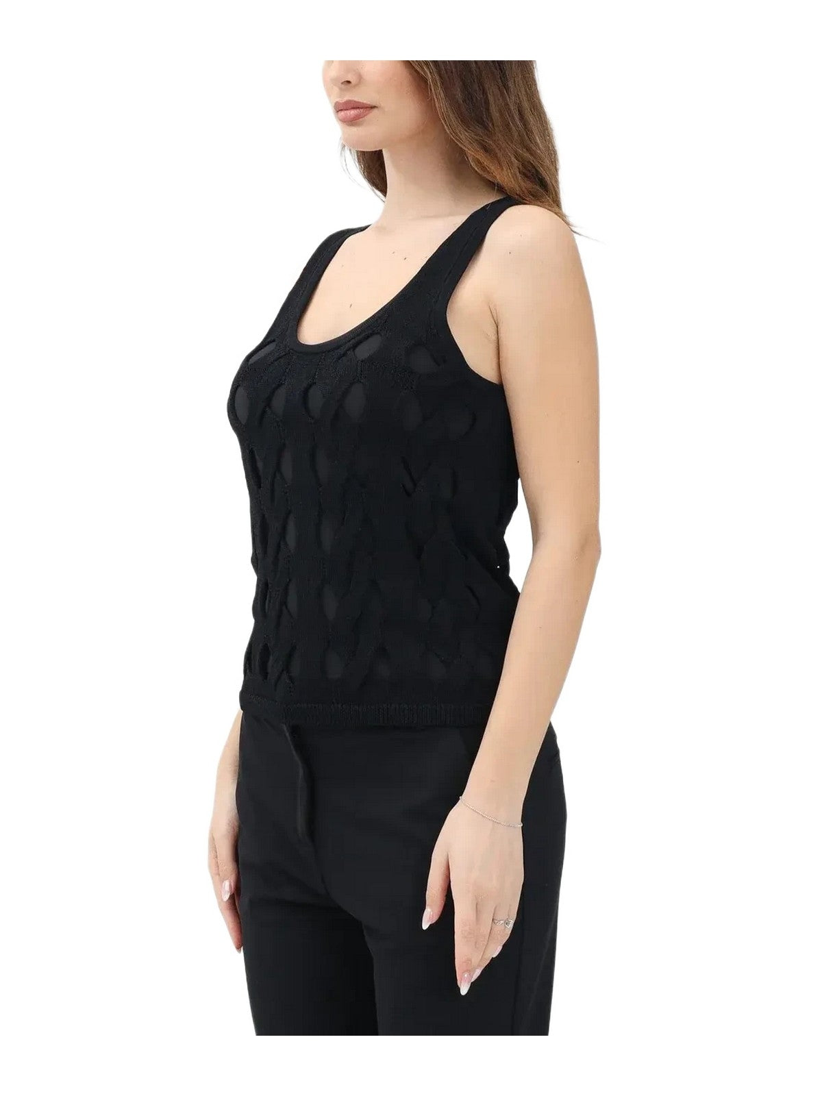 Canotte e top Donna Pinko - Top canottiera maglia traforata - Nero