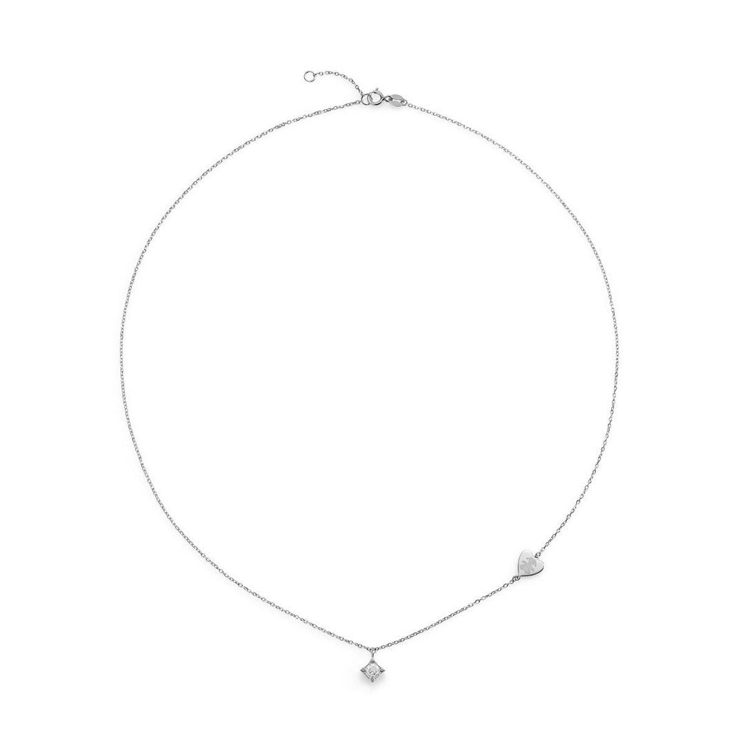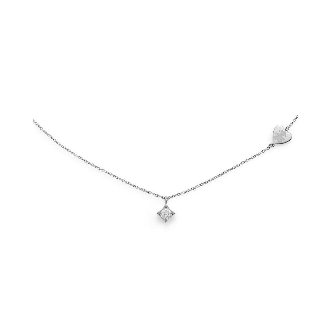 Collana in oro bianco 18kt con diamante 0,15ct e targhetta cuore con sagoma bimba incisa.