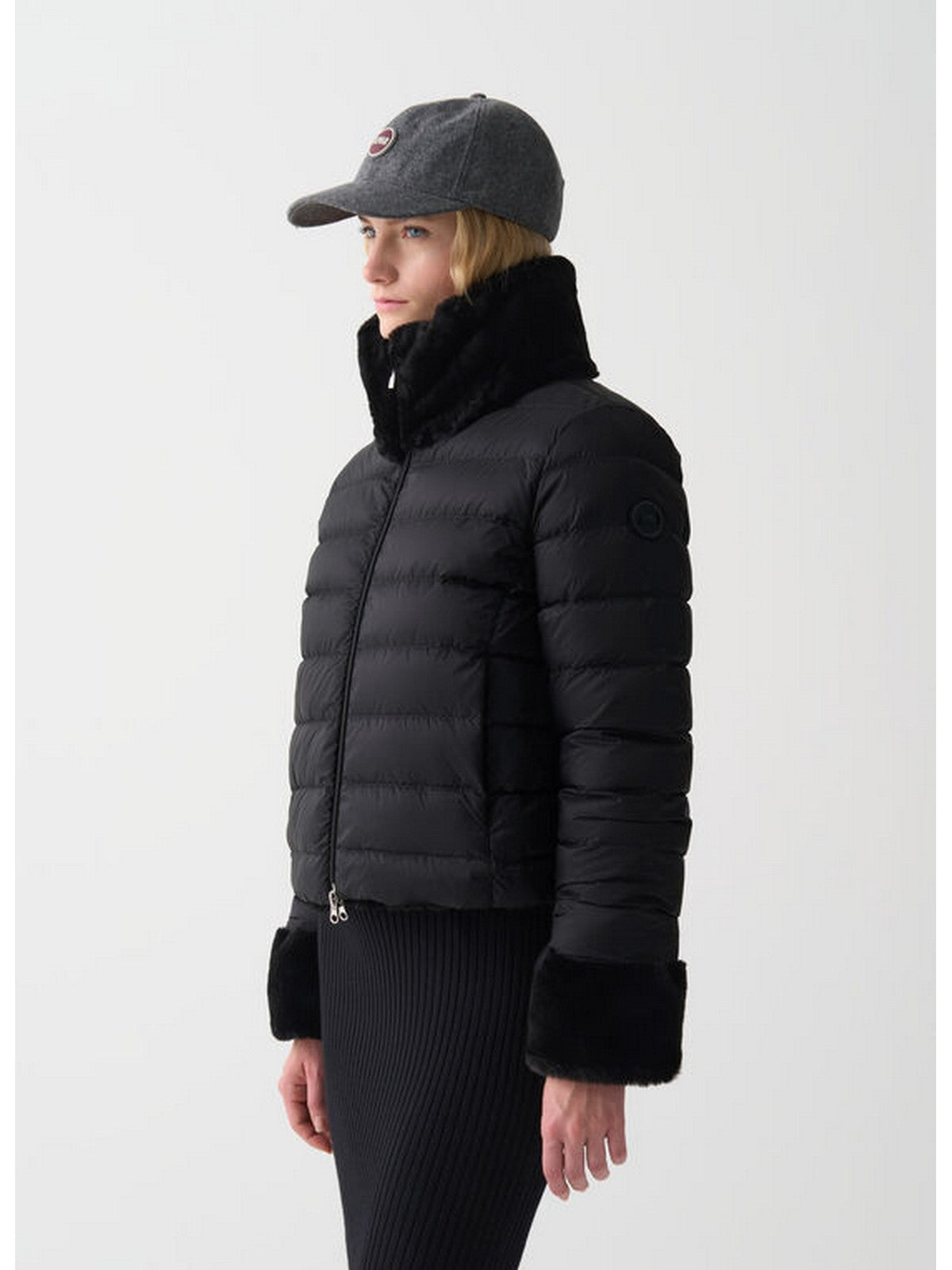 Gubbino da donna COLMAR, modello reversibile unisce la morbidezza e l'eleganza della pelliccia sintetica da un lato e la praticità e il calore della piuma trapuntata dall'altro.