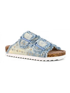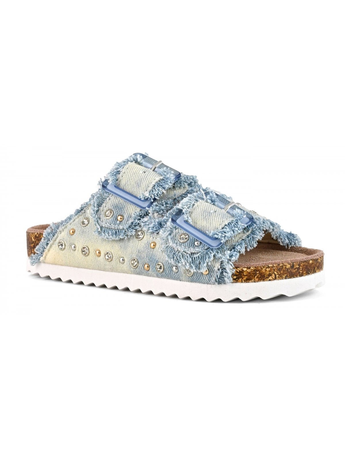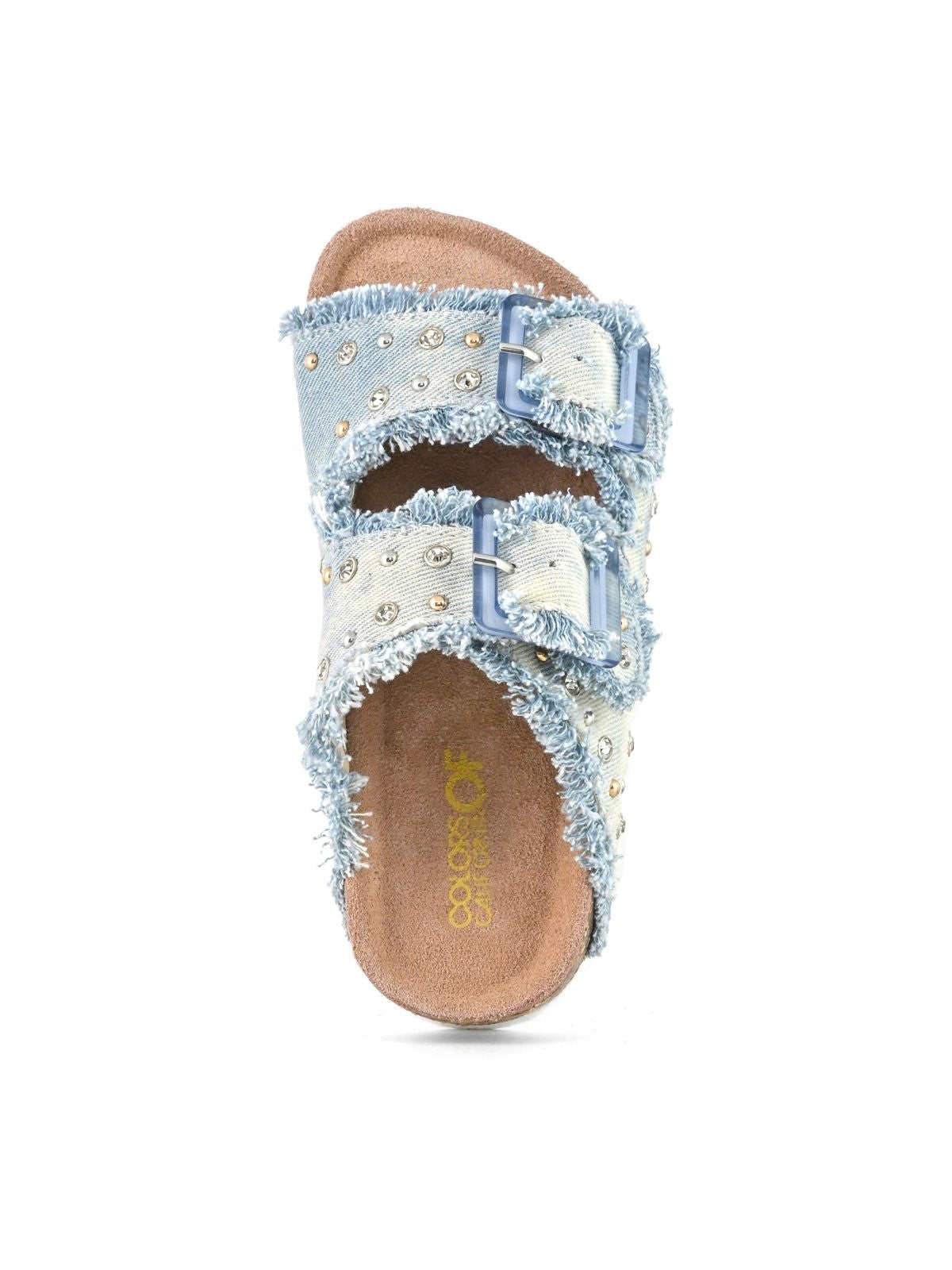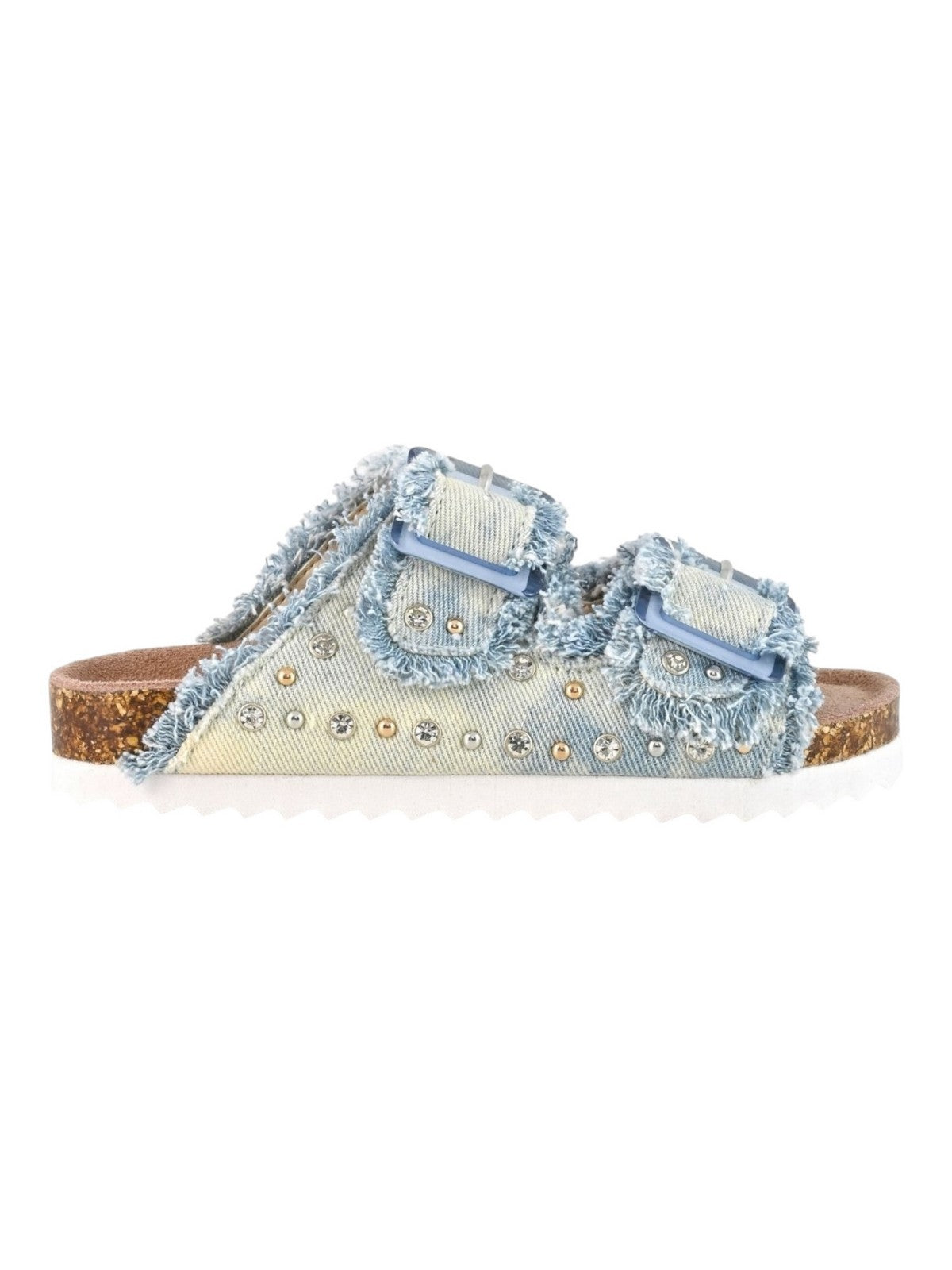 Sandalo COLORS OF CALIFORNIA con doppia fascia realizzato in denim sfrangiato impreziosito da strass colorati