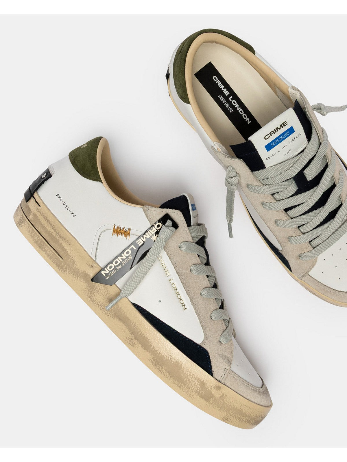 CRIME LONDON Sneaker Uomo SK8 DELUXE DOWNTOWN GREEN 19110PP8 10 WHITE