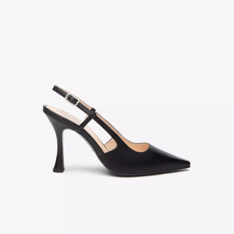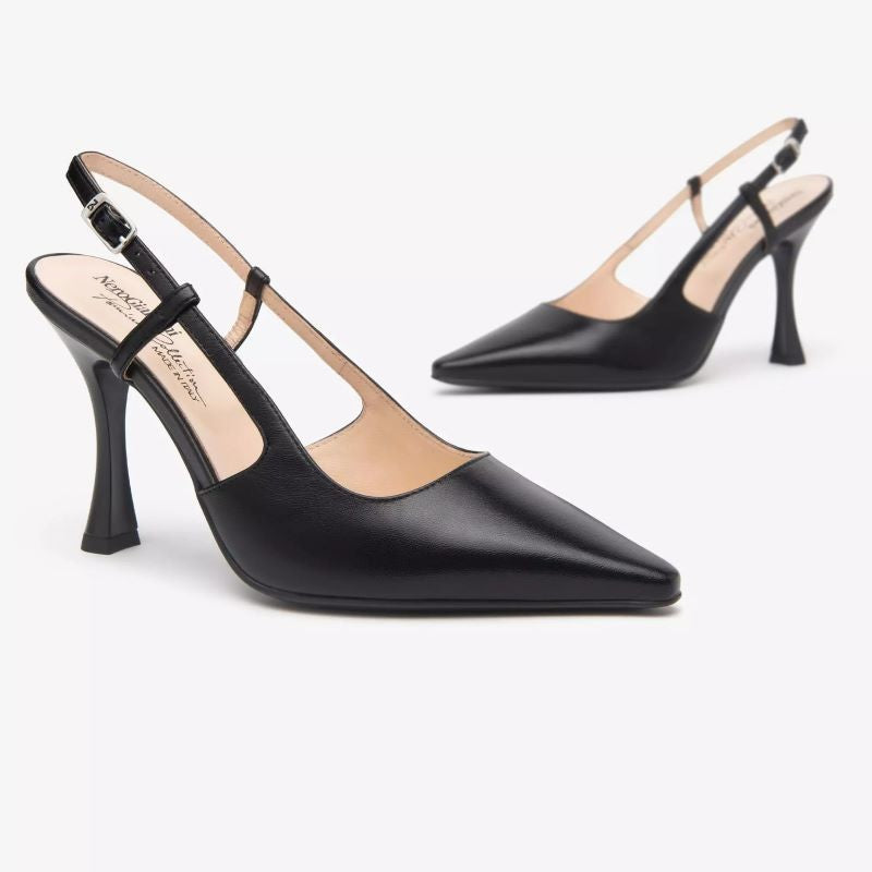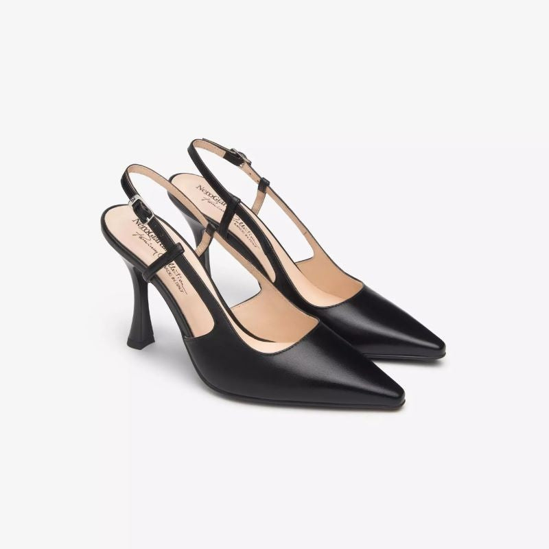 La NeroGiardini, parte della prestigiosa Premium Collection, è una slingback raffinata ed elegante, realizzata in pelle nappa pieno fiore di altissima qualità. Progettata per eventi, cerimonie o contesti professionali, questa scarpa unisce estetica sofisticata e comfort, grazie a linee pulite e raffinata manifattura Made in Italy.
