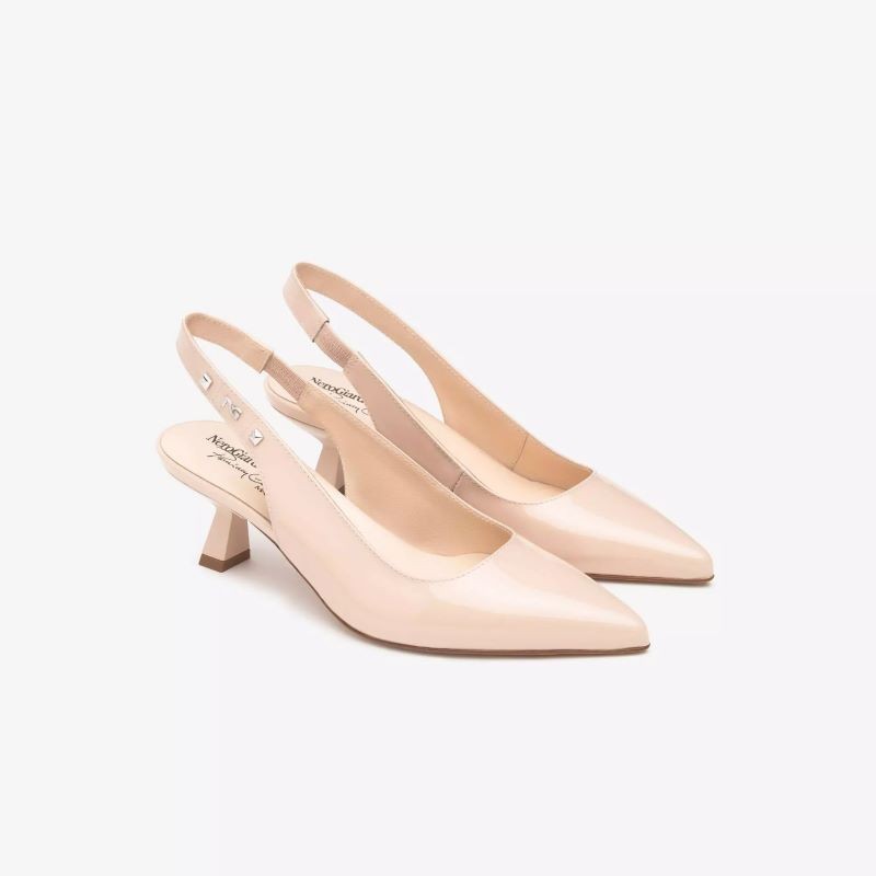 Décolleté elegante Nero Giardini da donna, realizzata in vernice lucida color rosa confetto. Il cinturino sul tallone con elastico assicura una calzata comoda e stabile. Il tacco svasato da 5 cm slancia la figura senza rinunciare al comfort. Interno in pelle e suola in gomma antiscivolo. Perfetta per cerimonie, eventi e occasioni speciali.