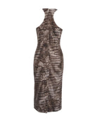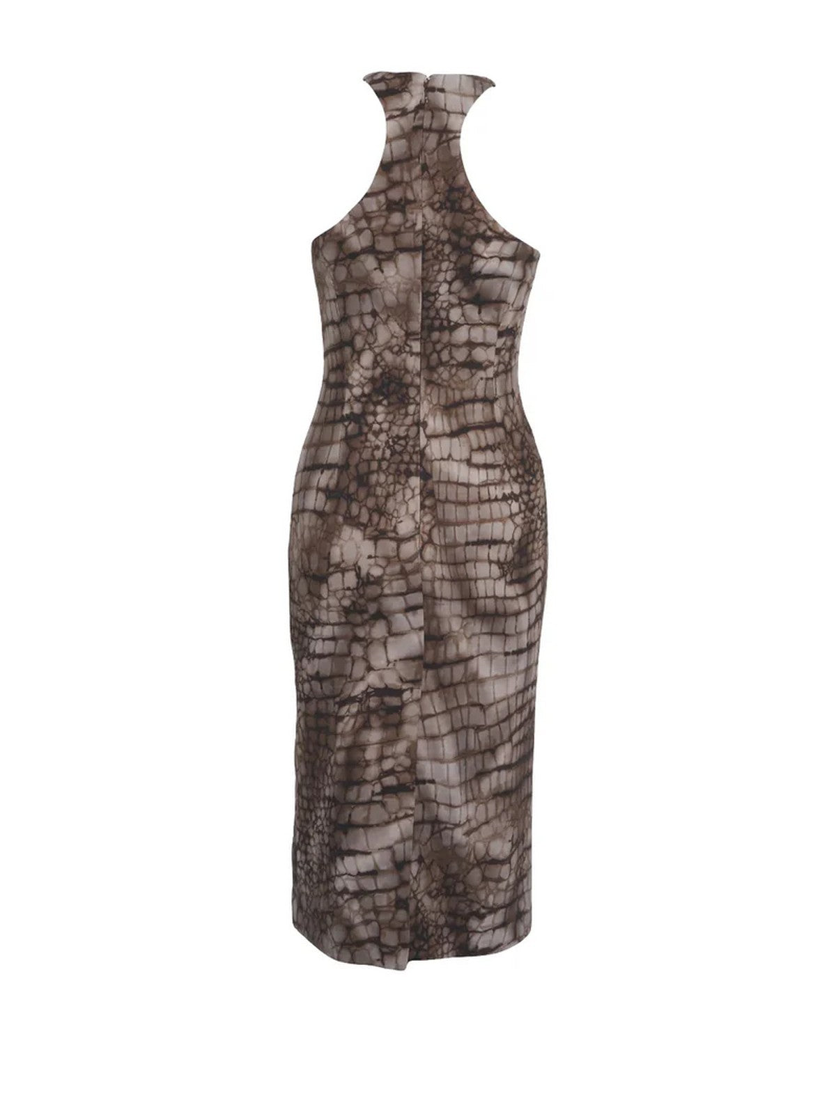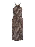 Abito tubino ELISABETTA FRANCHI in misto viscosa, motivo alligatore, marrone/beige.