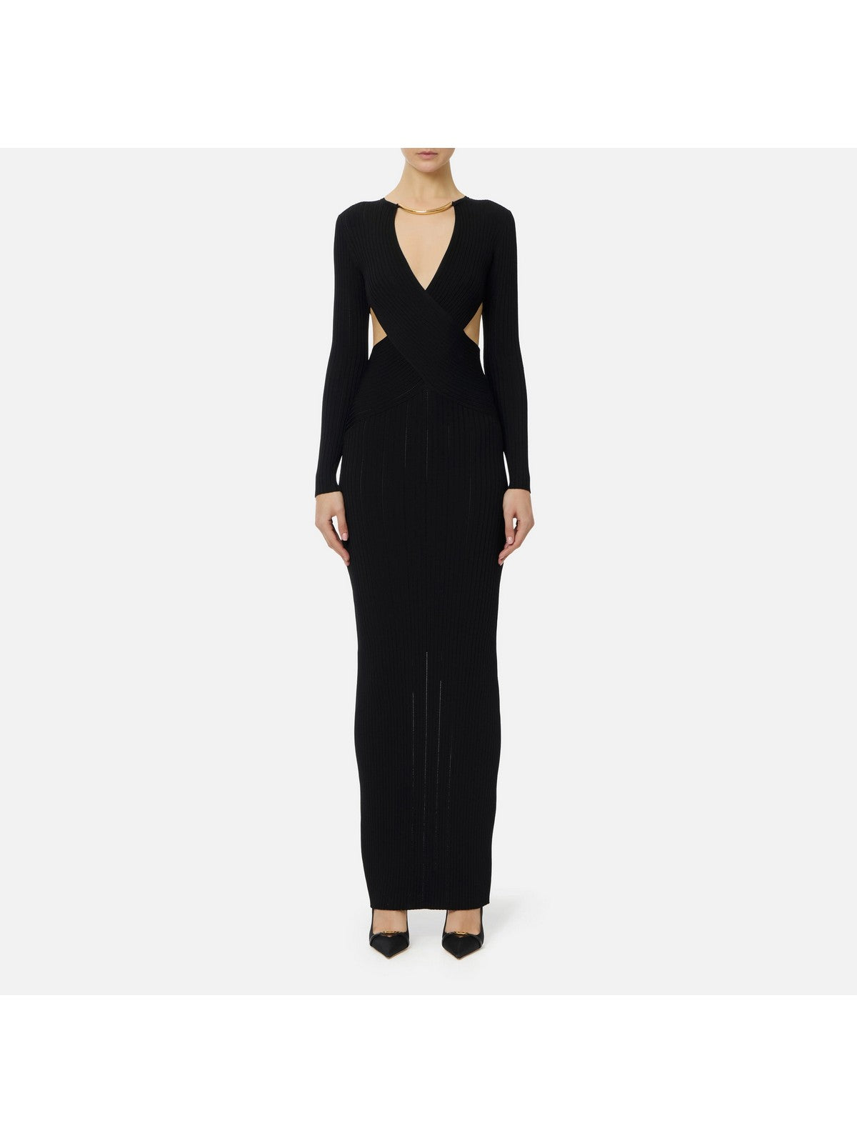 Abito Red Carpet Elisabetta Franchi in maglia à jour con dettaglio gioiello
