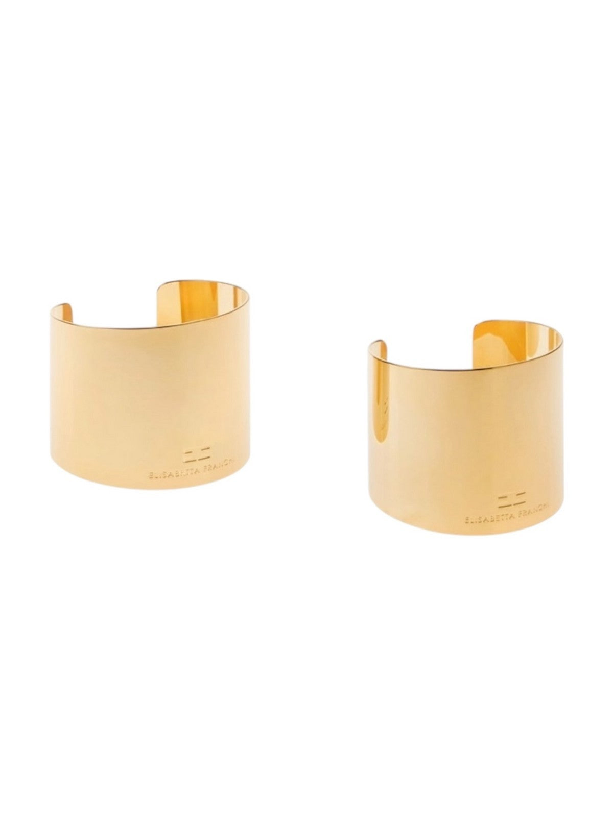 Coppia di bracciali cuff ELISABETTA FRANCHI realizzati in metallo con finitura dorata. Dal design avvolgente, sono personalizzati con logo inciso al fondo.