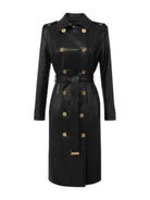 Trench ELISABETTA FRANCHI realizzato in materiale sintetico effetto pelle con texture craquelé. Le maniche sono definite da nastri asimmetrici con logo.
