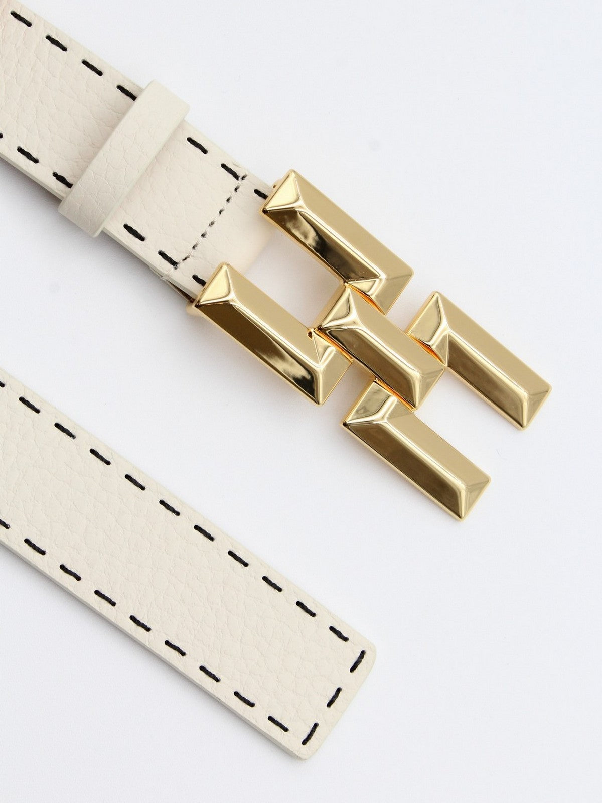 Questa cintura in pelle con placca oro è l'accessorio ideale per chi cerca un equilibrio perfetto tra eleganza e praticità. Unisce qualità e design, offrendo un look raffinato che si adatta a qualsiasi occasione.