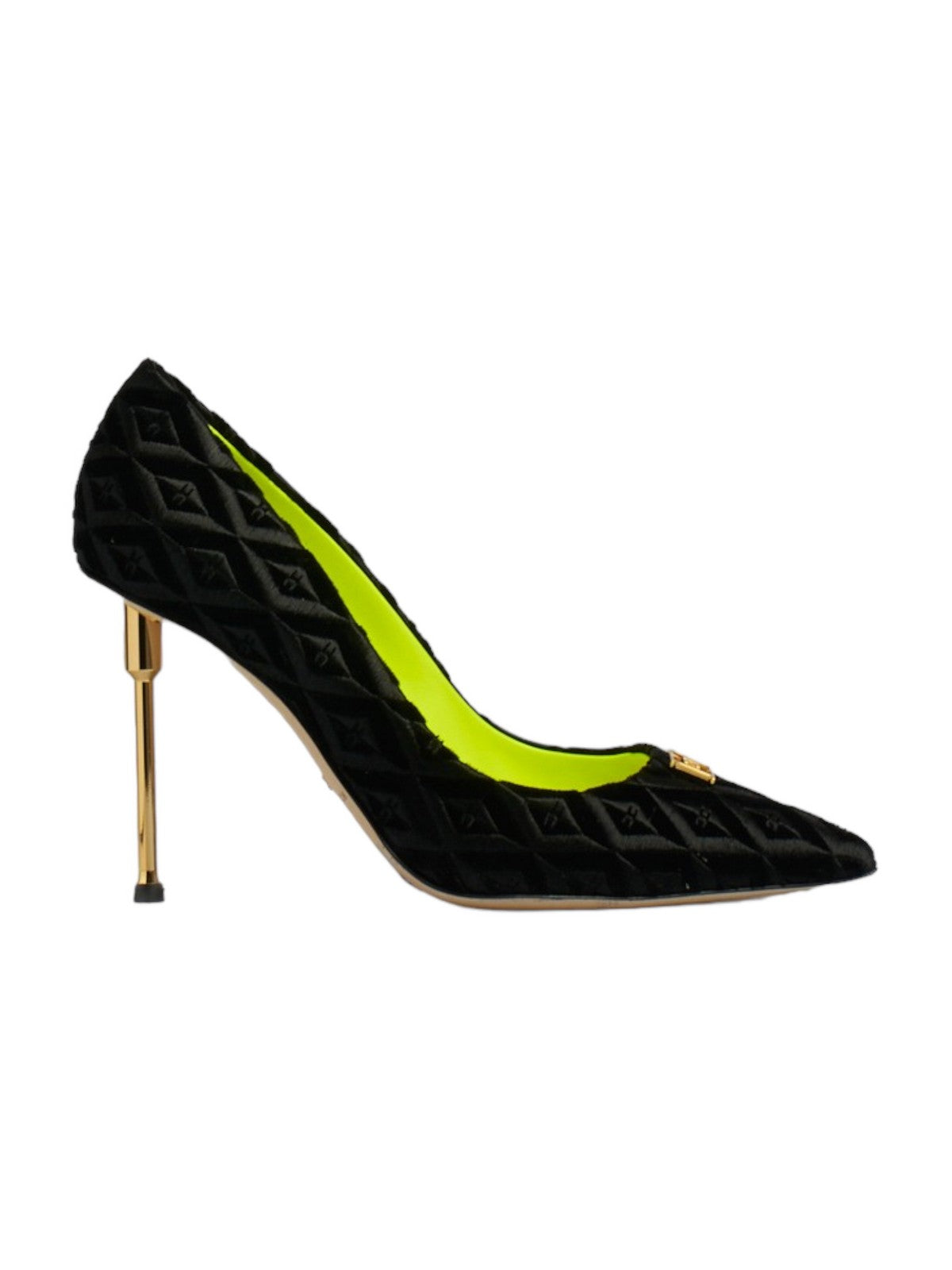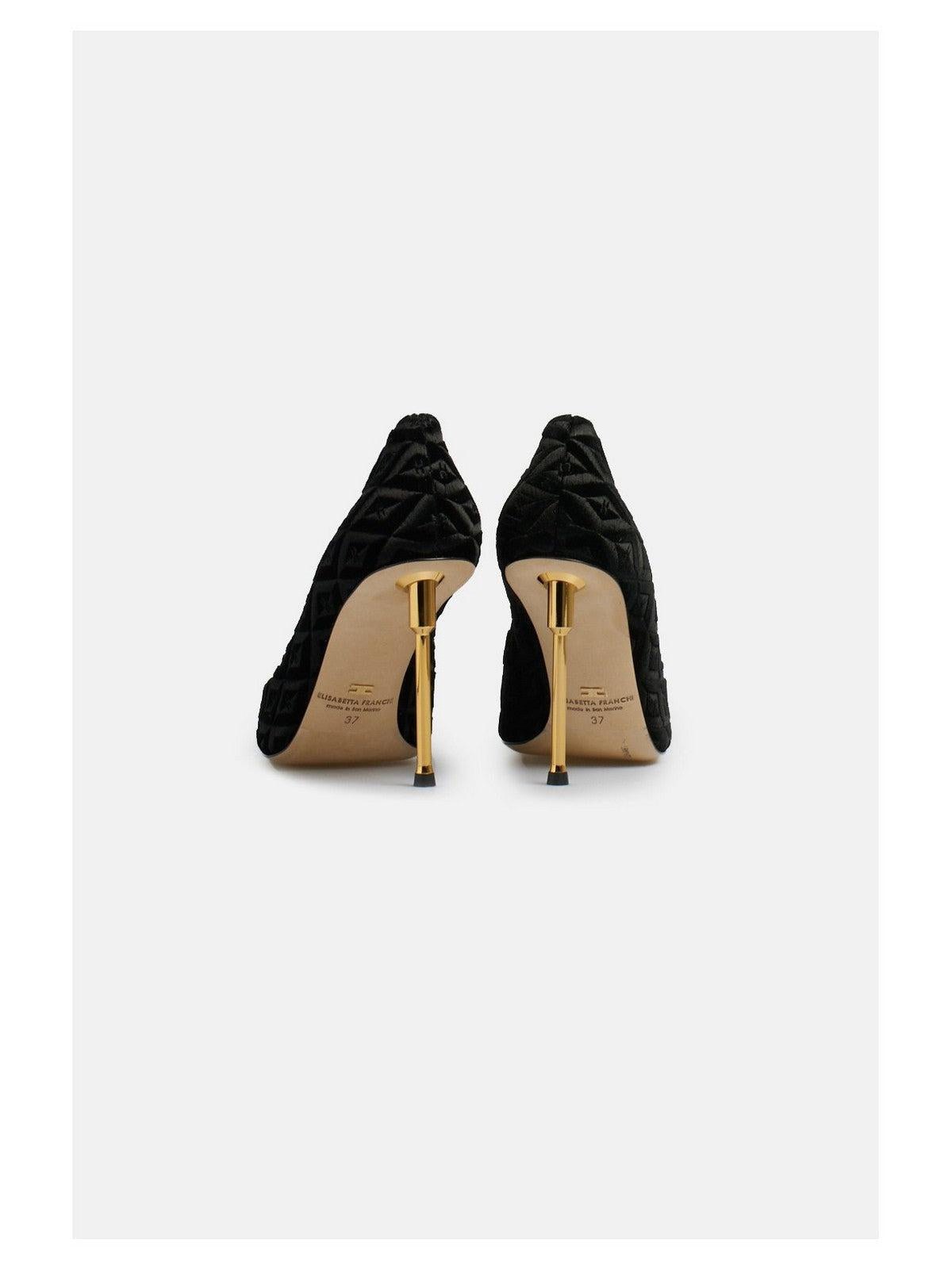 Décolleté ELISABETTA FRANCHI in velluto con motivo rombi matelassé all-over. Caratterizzato da tacco scultura e rivetto in metallo dorato