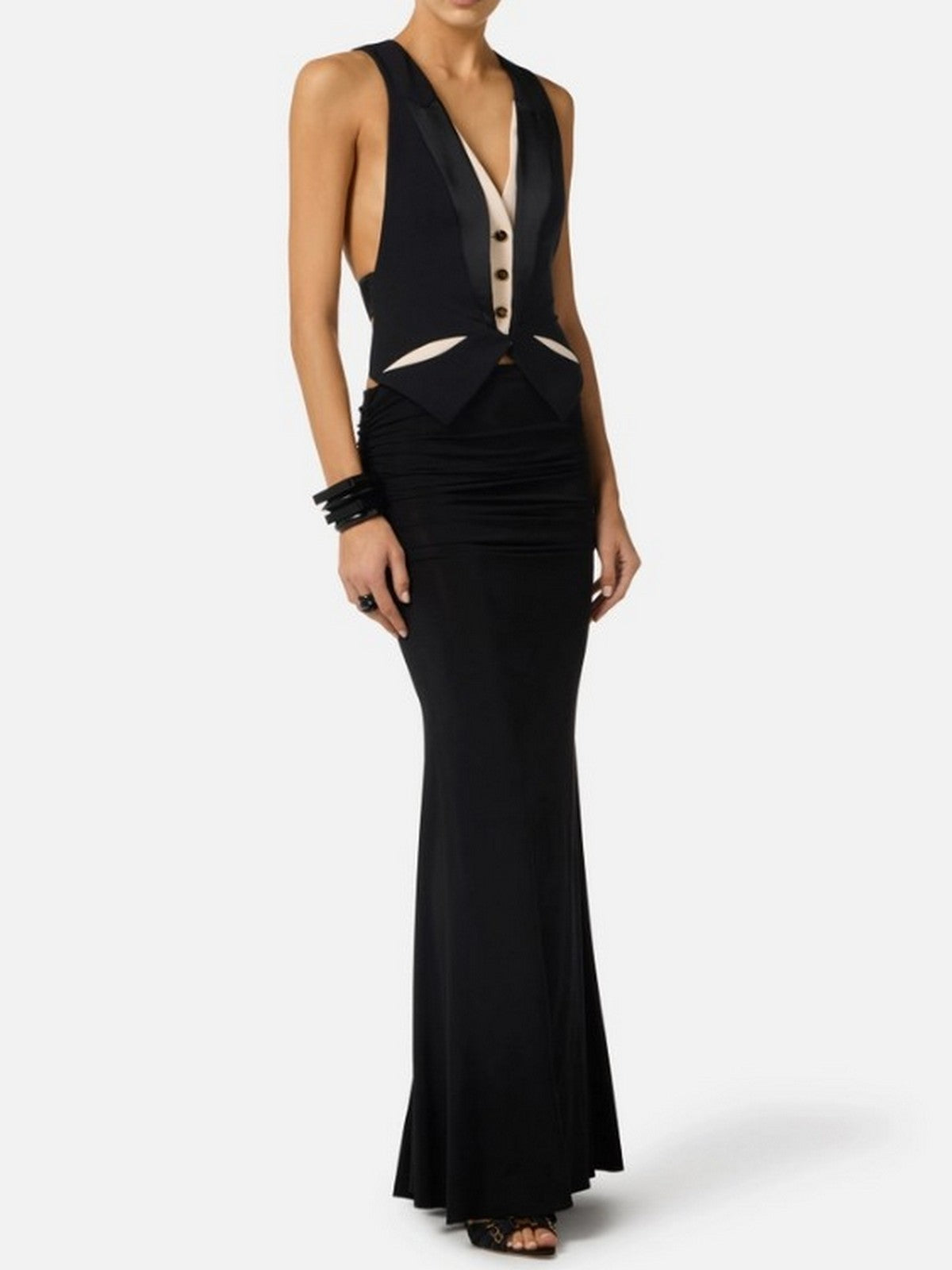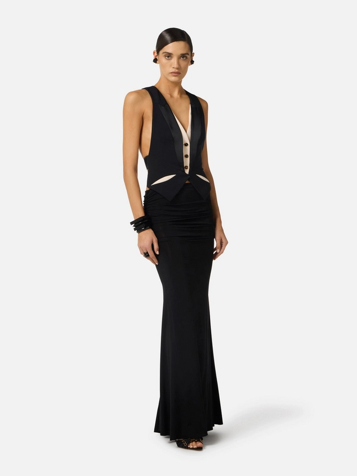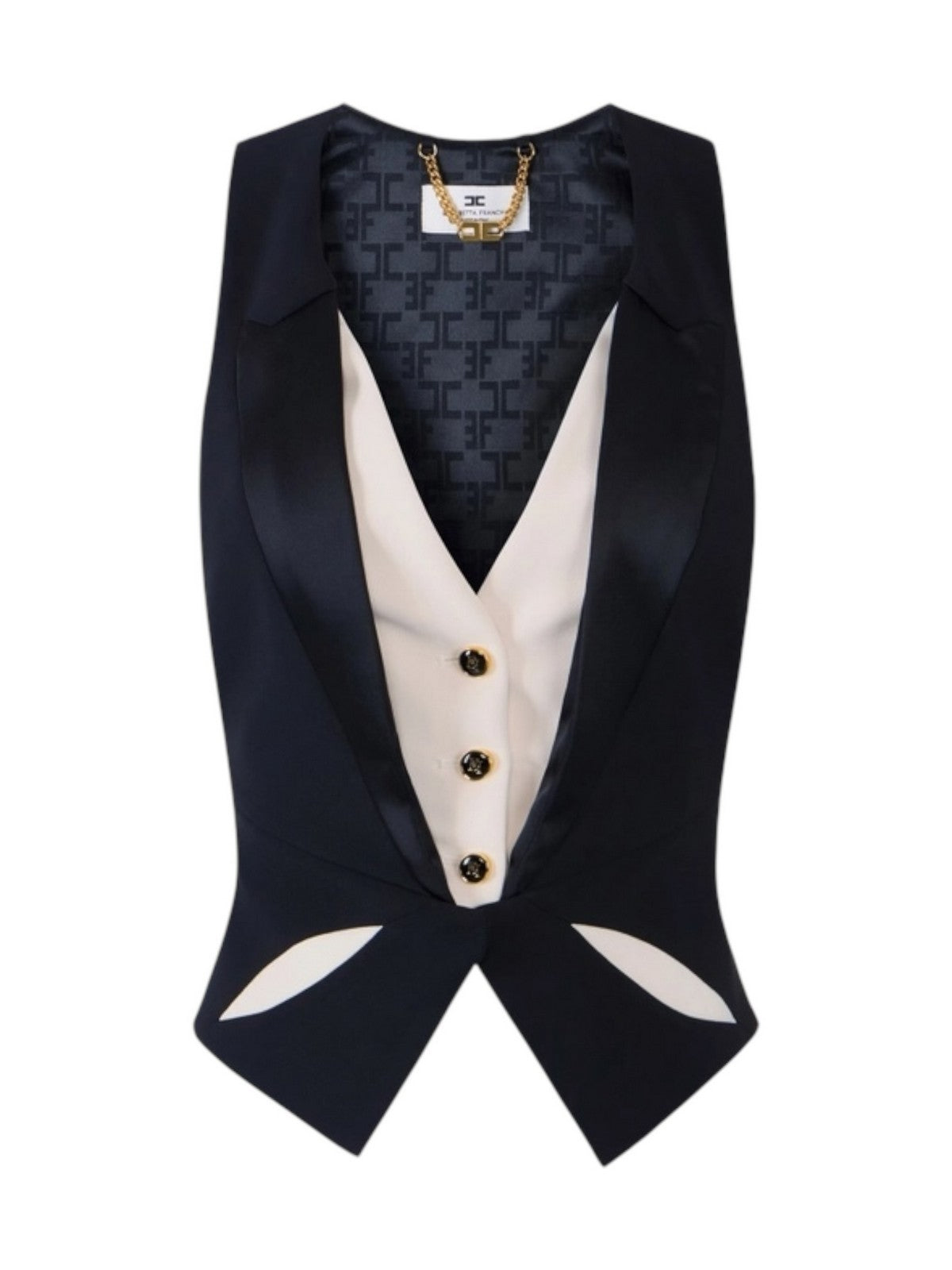 Gilet ELISABETTA FRANCHI in crêpe leggero con rever realizzati in raso