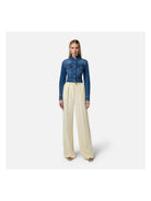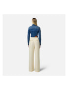 La modella è alta 177 cm e indossa una taglia 40 IT slim e cropped