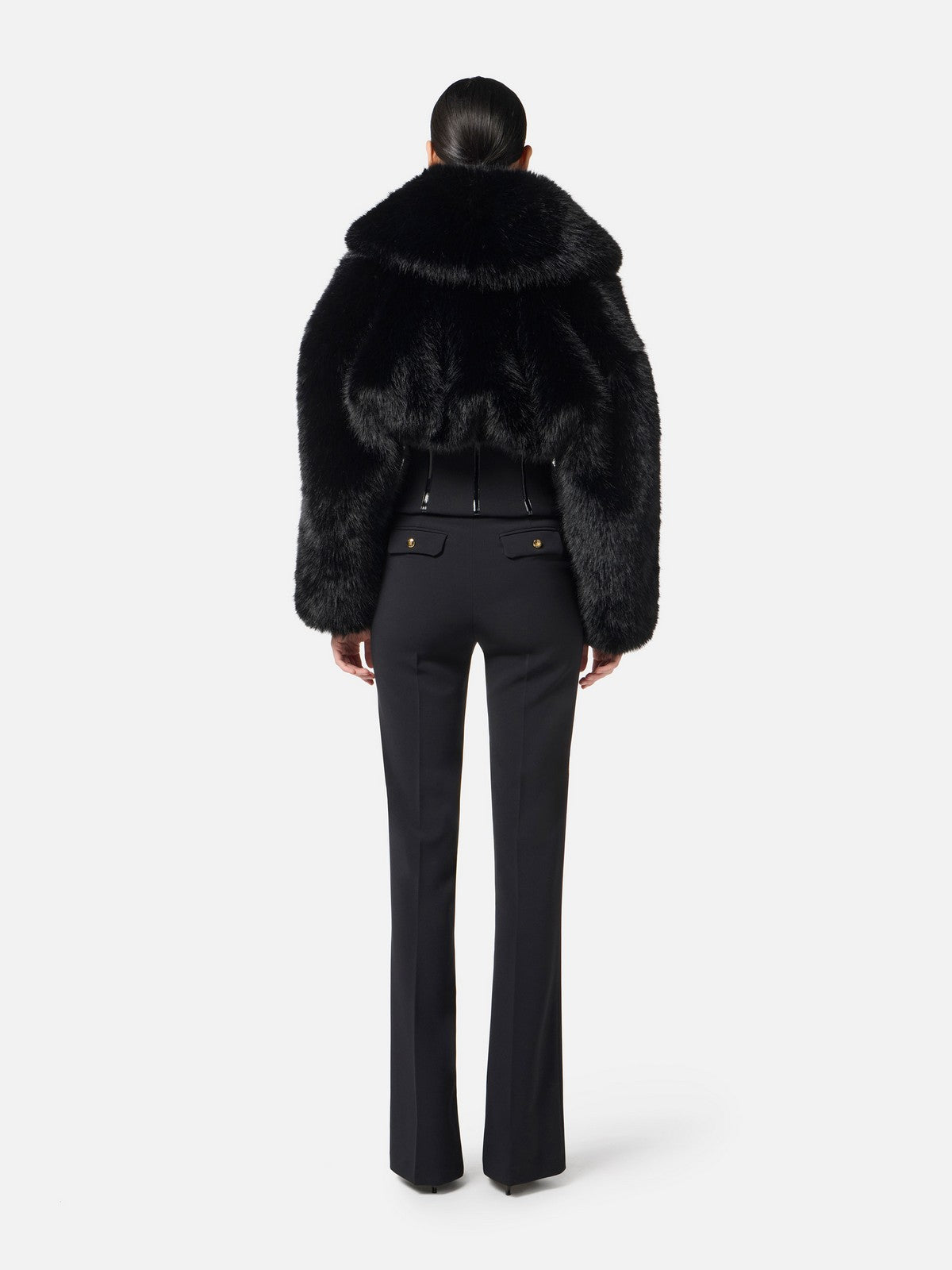 ? Giubbino con effetto pelliccia e doppio crêpe.