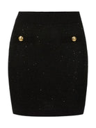 Gonna ELISABETTA FRANCHI in maglia rifinita con vita e filetti lavorati a costine e texture con paillettes in trama