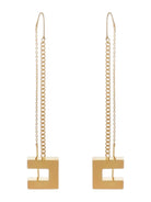 Orecchini ELISABETTA FRANCHI in metallo con finitura dorata caratterizzati dalla catena con logo pendente su una estremità.