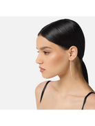 Orecchini lunghi ELISABETTA FRANCHI in metallo con finitura dorata caratterizzati dalla texture luminosa in full strass e dal dettaglio con logo al fondo.