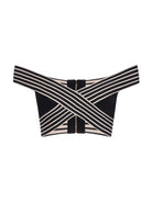 Top Elisabetta Franchi in maglia con bande a righe, lavorazione a costine e le nervature orizzontali rendono la trama vibrante.