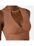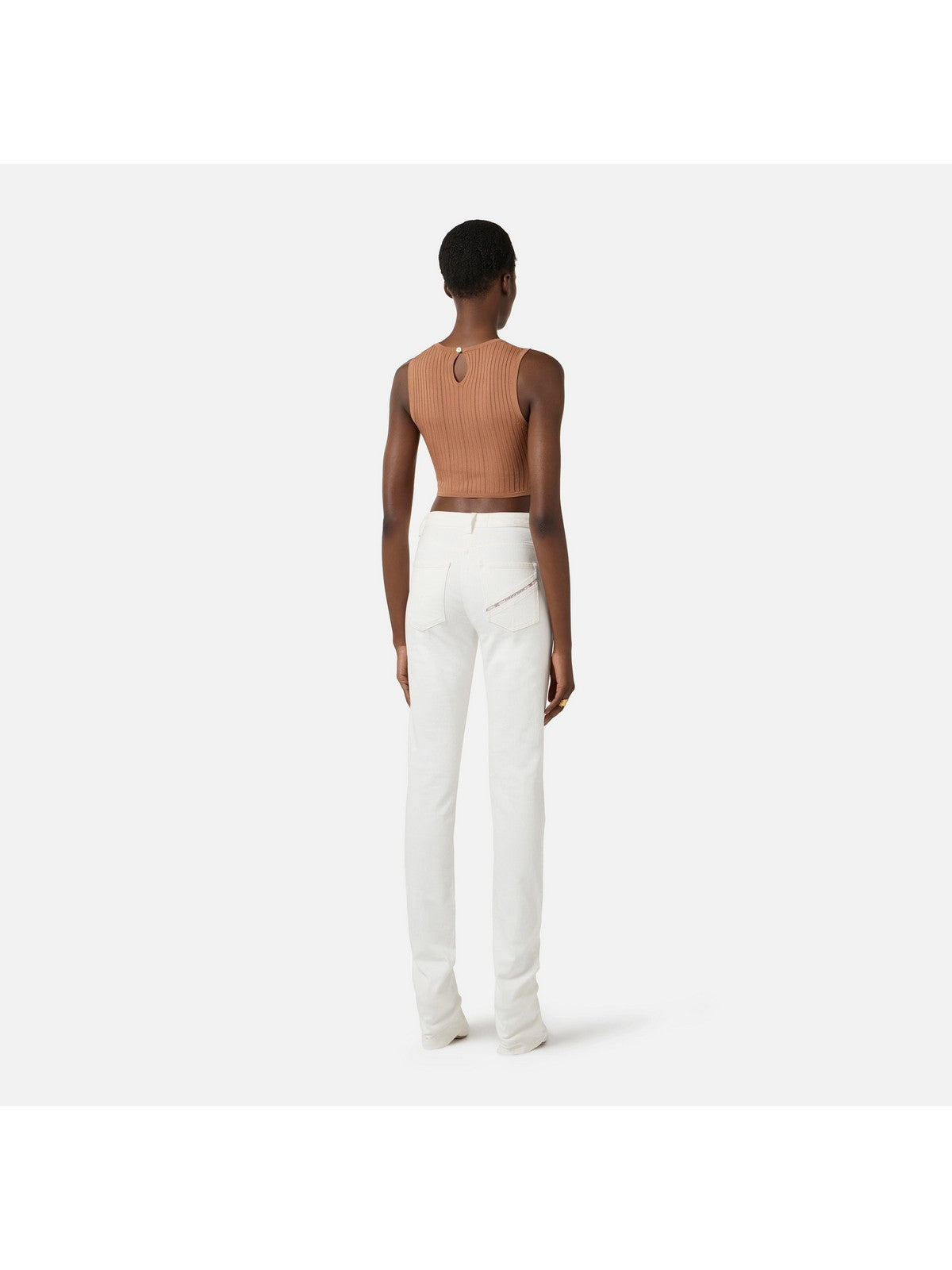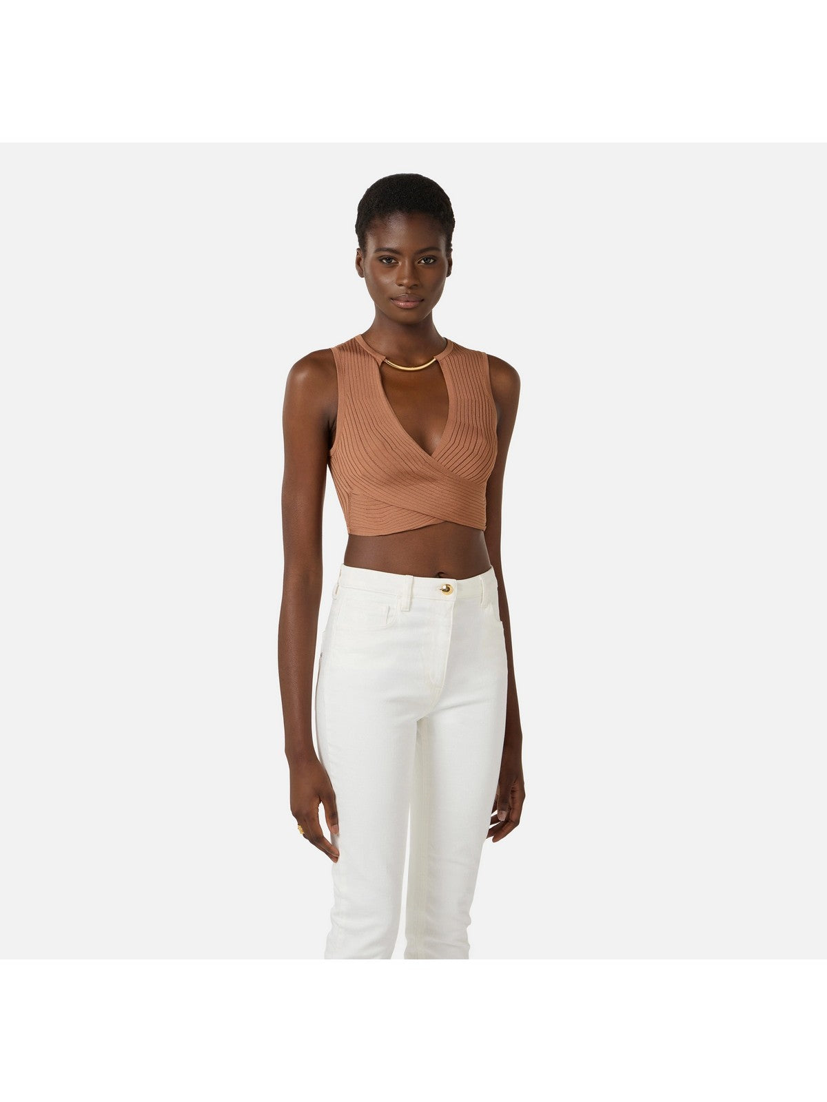 Top Elisabetta Franchi in maglia con dettaglio gioiello lavorazione a costine traforate