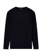 Maglione EMPORIO ARMANI realizzato in misto lyocell, lavorata a punto fantasia mostra un esclusivo motivo a rilievo.