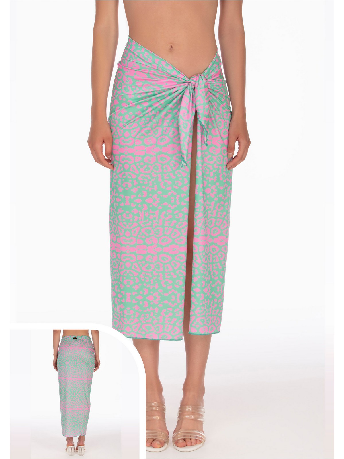 Pareo lungo F**K in tulle stampato all-over, motivo fantasia maculata. Con nodo regolabile.