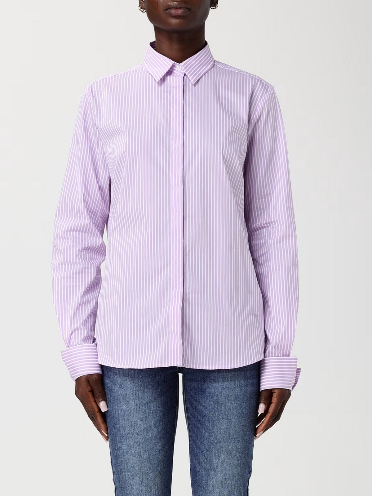 Camicia donna FAY realizzata in popeline di cotone stretch, motivo righe bicolore.
