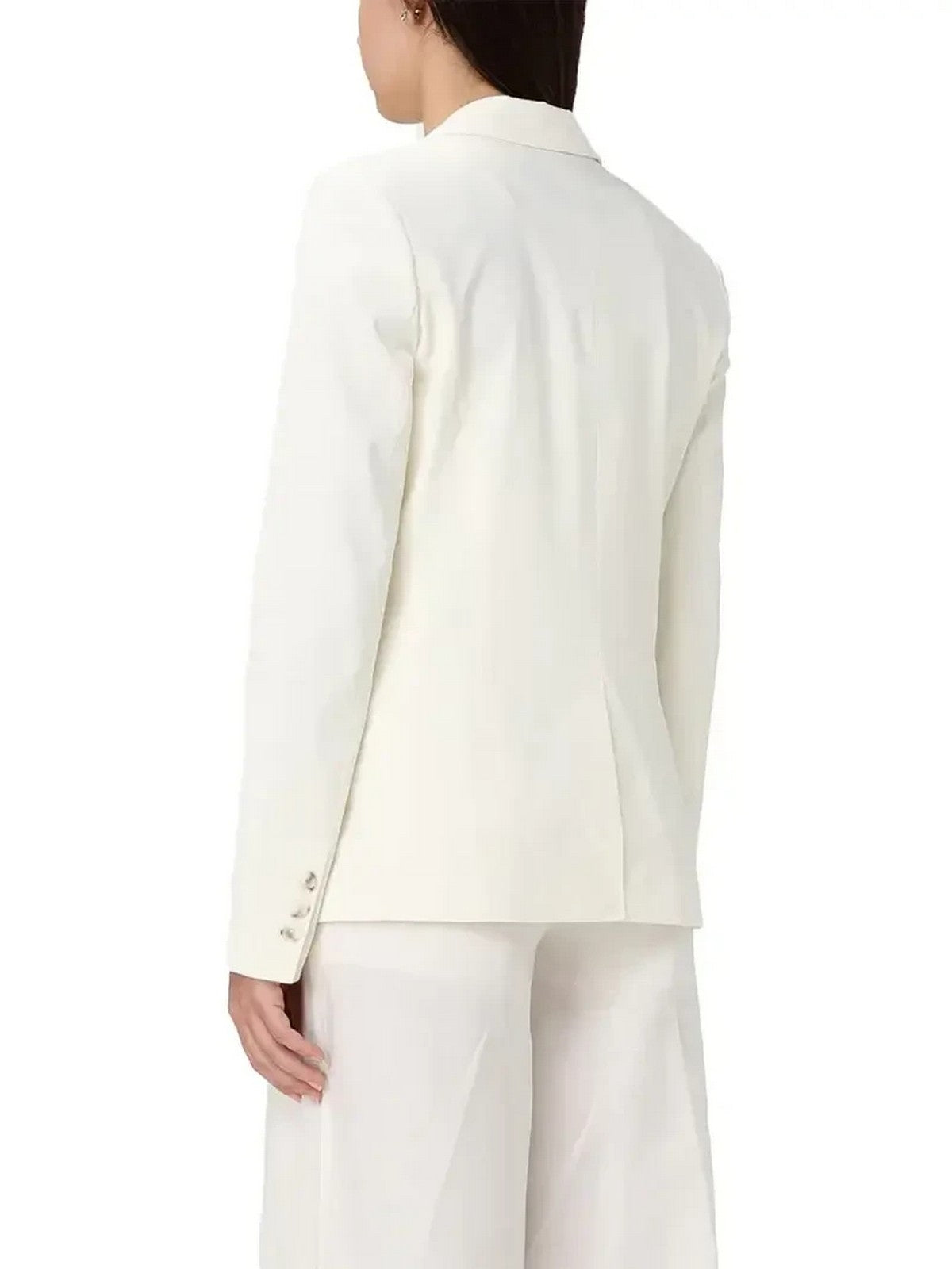 Giacca blazer monopetto dalla linea sfiancata in tessuto misto lino stretch, fresco e perfetto per la bella stagione. Il blazer è completato da collo a rever, maniche lunghe con bottoni al fondo e tasche a filetto con patta applicata sui fianchi. La chiusura monopetto è completata da bottone singolo in metallo, per un tocco scintillante e originale. Questo blazer è perfetto dalla mattina in ufficio fino alle serate speciali, insieme a un abito oppure con pantaloni abbinati.