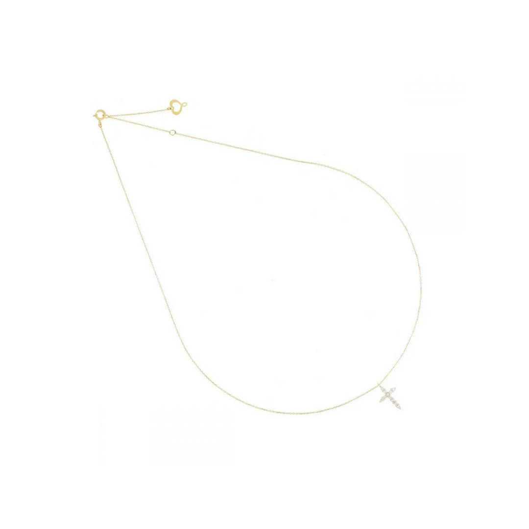 Girocollo Brillando in oro giallo 18 carati e croce 10 mm x 10 mm con pavé di diamanti bianchi.