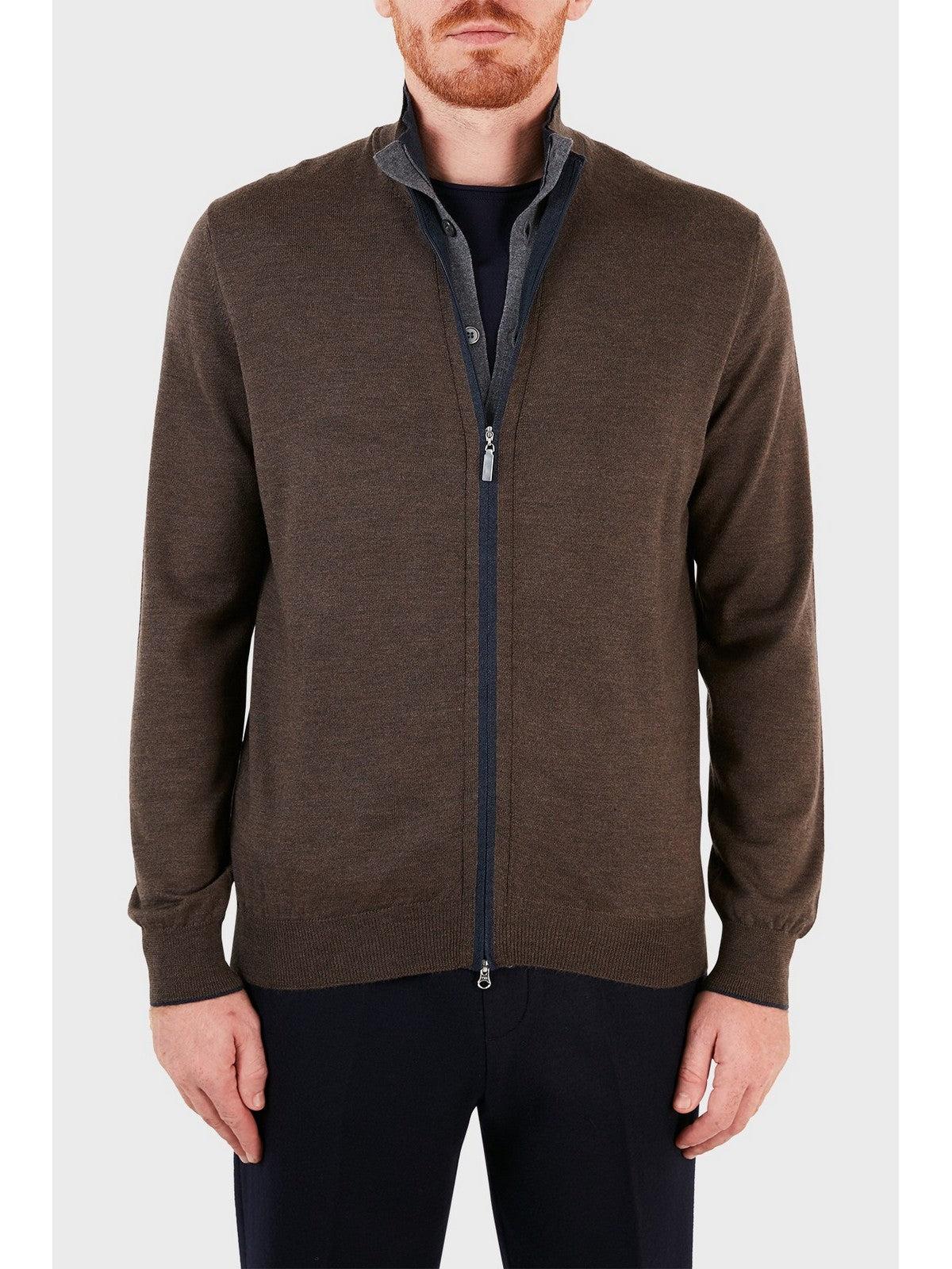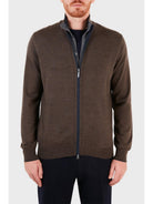 Cardigan GRAN SASSO in pura lana merinos, tinta unita. Chiusura a zip doppio cursore e bottoni. Rifinito a coste su polsi e fondo. Fashion fit.