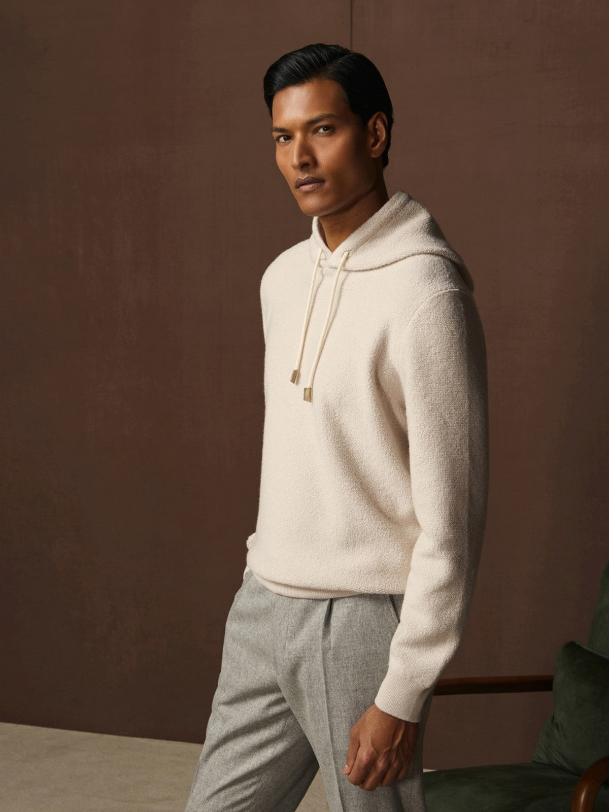 Felpa GRAN SASSO in misto cashmere realizzato da una raffinata lavorazione a punto pelliccia.