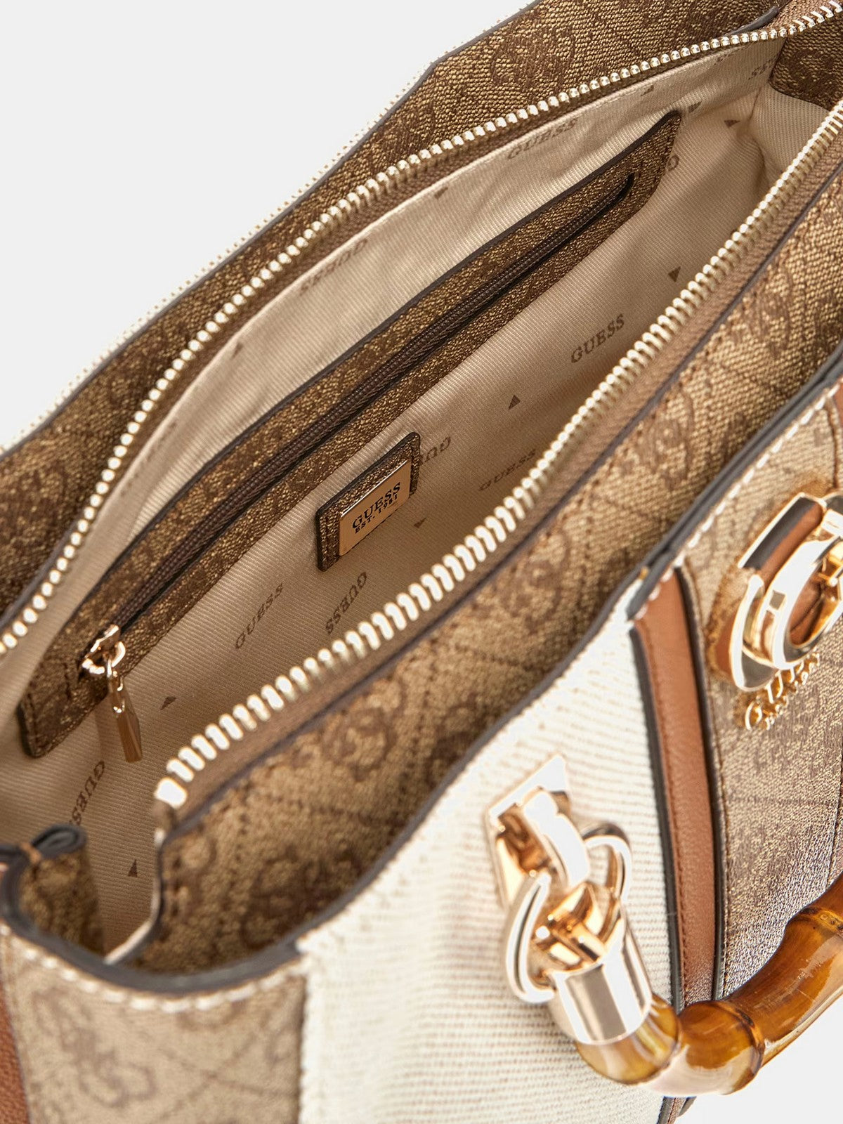 Borsa GUESS in tela di misto cotone con Inserti stampa 4G logo.