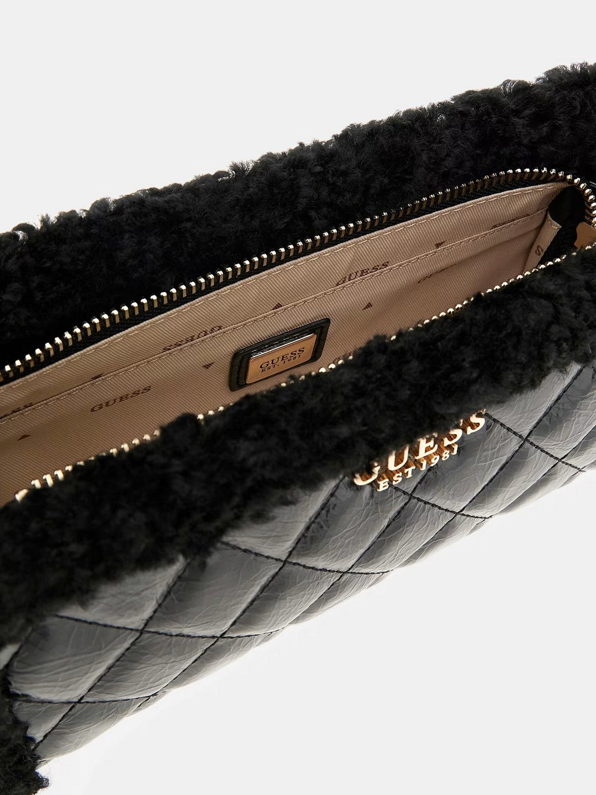 Borsa GUESS in simil pelle trapuntata effetto vernice.