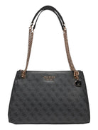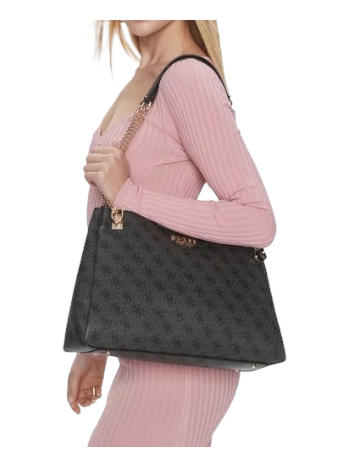 Borsa GUESS in similpelle. Motivo logo 4G all-over, scritta logo sul fronte. Chiusura con zip. Manici da spalla a catena con spallaccio in similpelle.