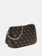 Borsa tracolla GUESS in simil pelle. Stampa 4G logo. Triangolo logo in metallo frontale.