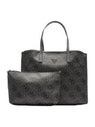 Borsa Guess in similpelle. Motivo logo 4g all-over. Logo triangolo sul fronte. All'interno maxi pochette con zip removibile. Due manici. Chiusura con gancio.