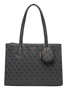 Borsa GUESS in similpelle. Motivo logo 4G all-over. Triangolo logo sul fronte. Chiusura con zip. Manici da spalla. Charm portamonete attaccato alla base del manico.