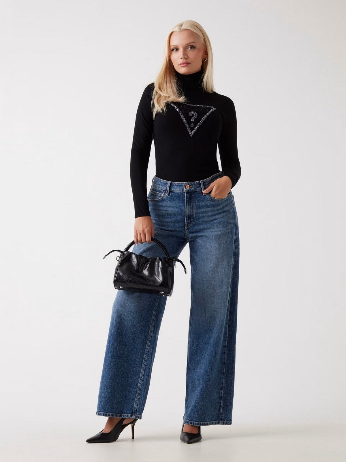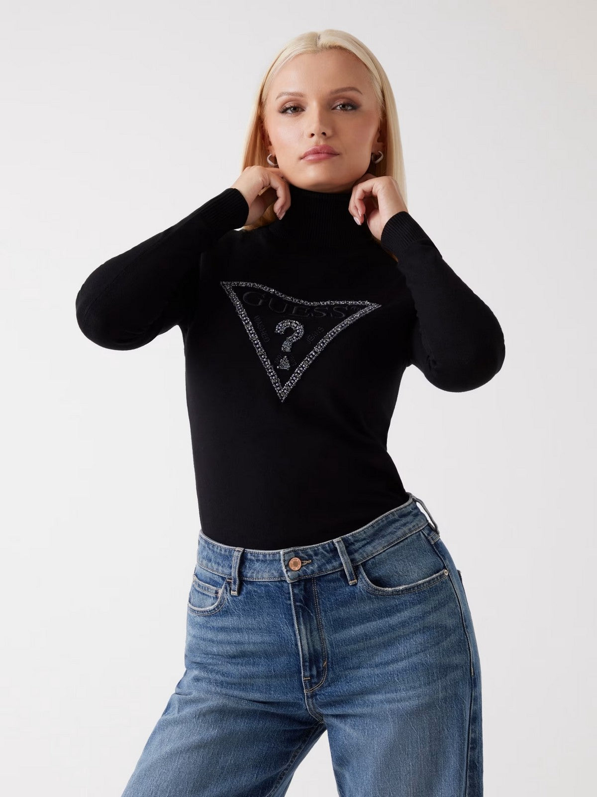 GUESS Maglione dolcevita Donna LS TN MELANIE TRIANGLE LOGO SW W5BR39 Z2NQ2 JBLK Jet Black A996