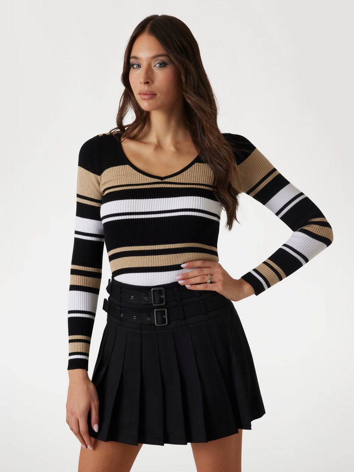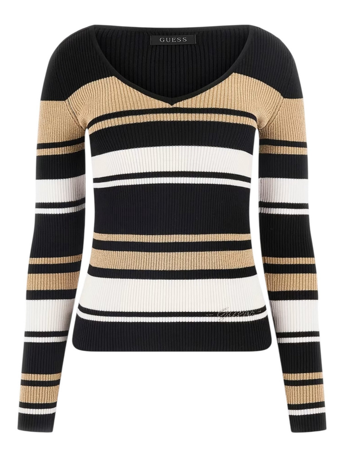 GUESS Maglione Donna EVIE STRIPED VN LS SWTR W5RR22 Z2Y72 S04F Nero