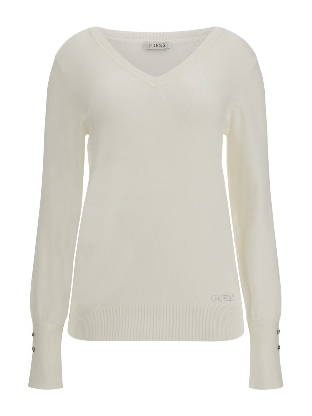 Maglioncino GUESS in misto viscosa. Logo guess sul fondo. Scollo a V, Maniche lunghe con polsi a coste.