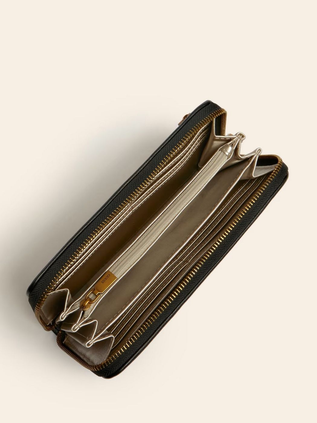 Portafoglio aviana Guess in similpelle a stampa 4G logo con scritta logo in metallo frontale. Chiusura con zip. All'interno scomparti per banconote, documenti e carte business, scomparto con zip per monete. Tasca esterna posteriore con zip. 21x10x2