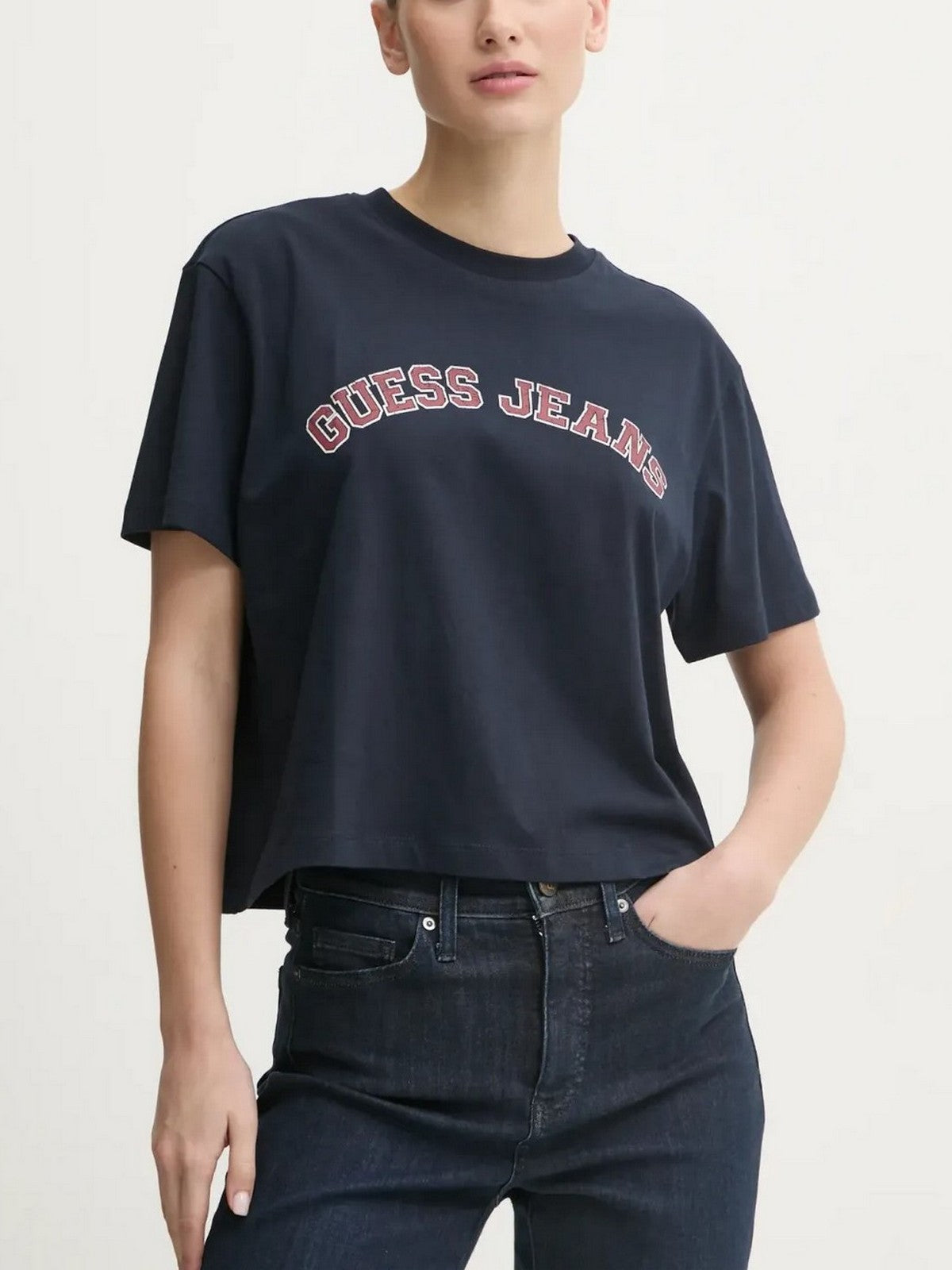 GUESS T-shirt Donna GJ SS CN BOXY COLLEGIATE TEE W5RI41 K8HM0 A71W Blu