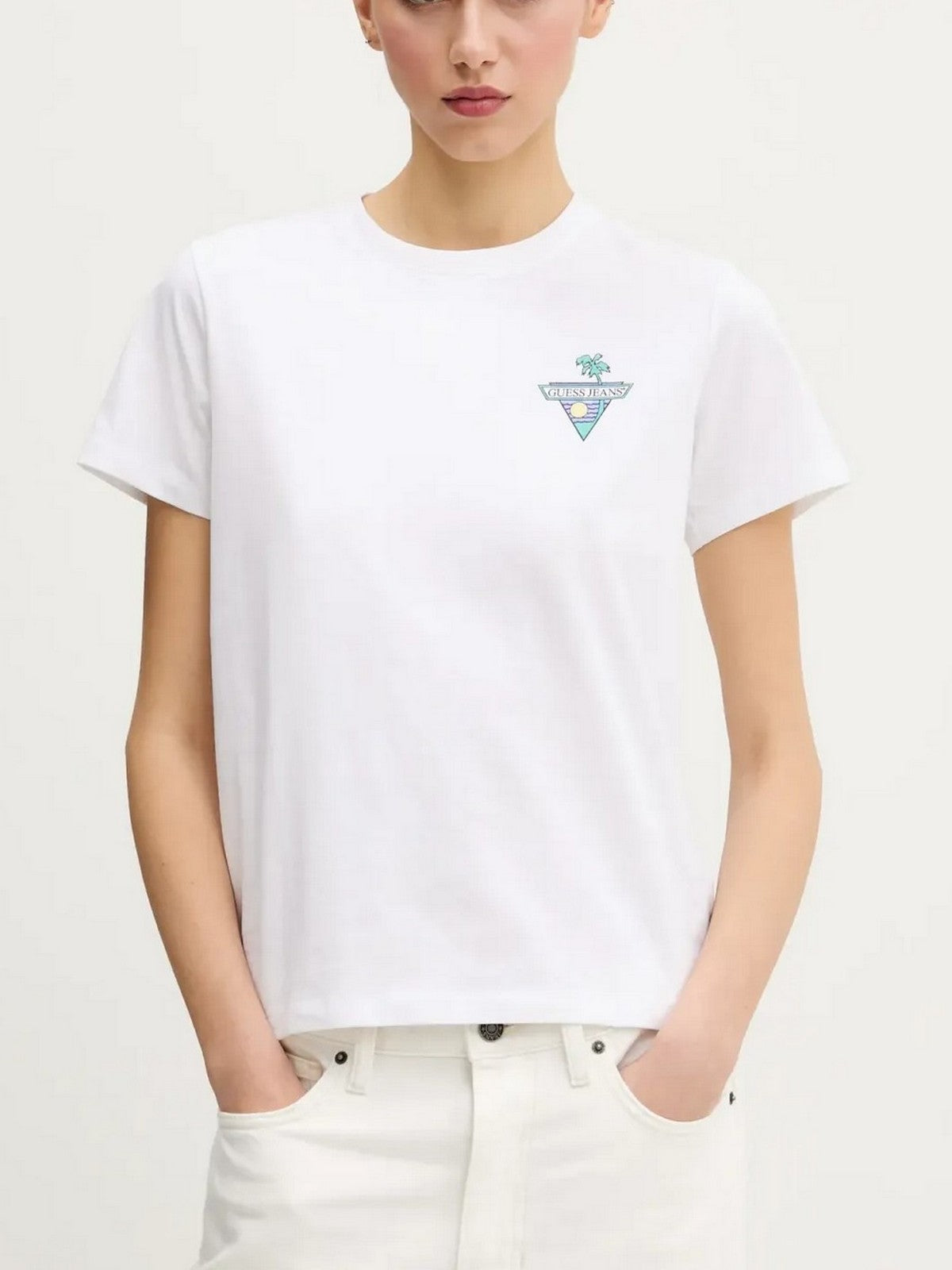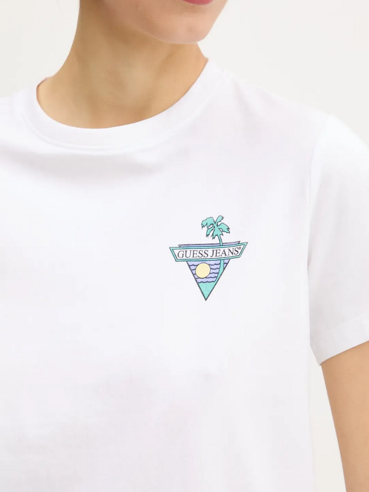 GUESS T-shirt Donna GJ SS CN REG TRIANGLE PALM TEE W5GI25 J1314 G011 Bianco
