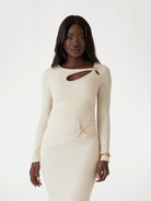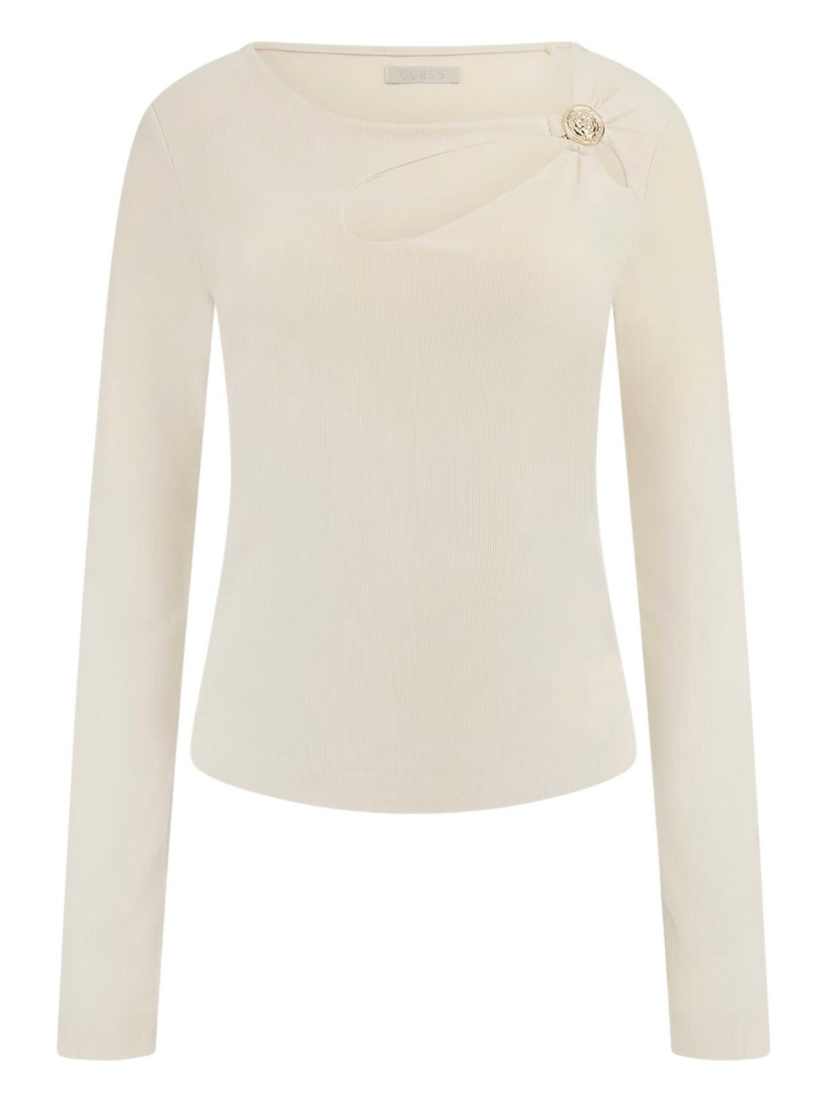 GUESS T-shirt Donna LS ZAMA CUT OUT NECK TOP W5RP12 KAQL2 G1M5 Bianco