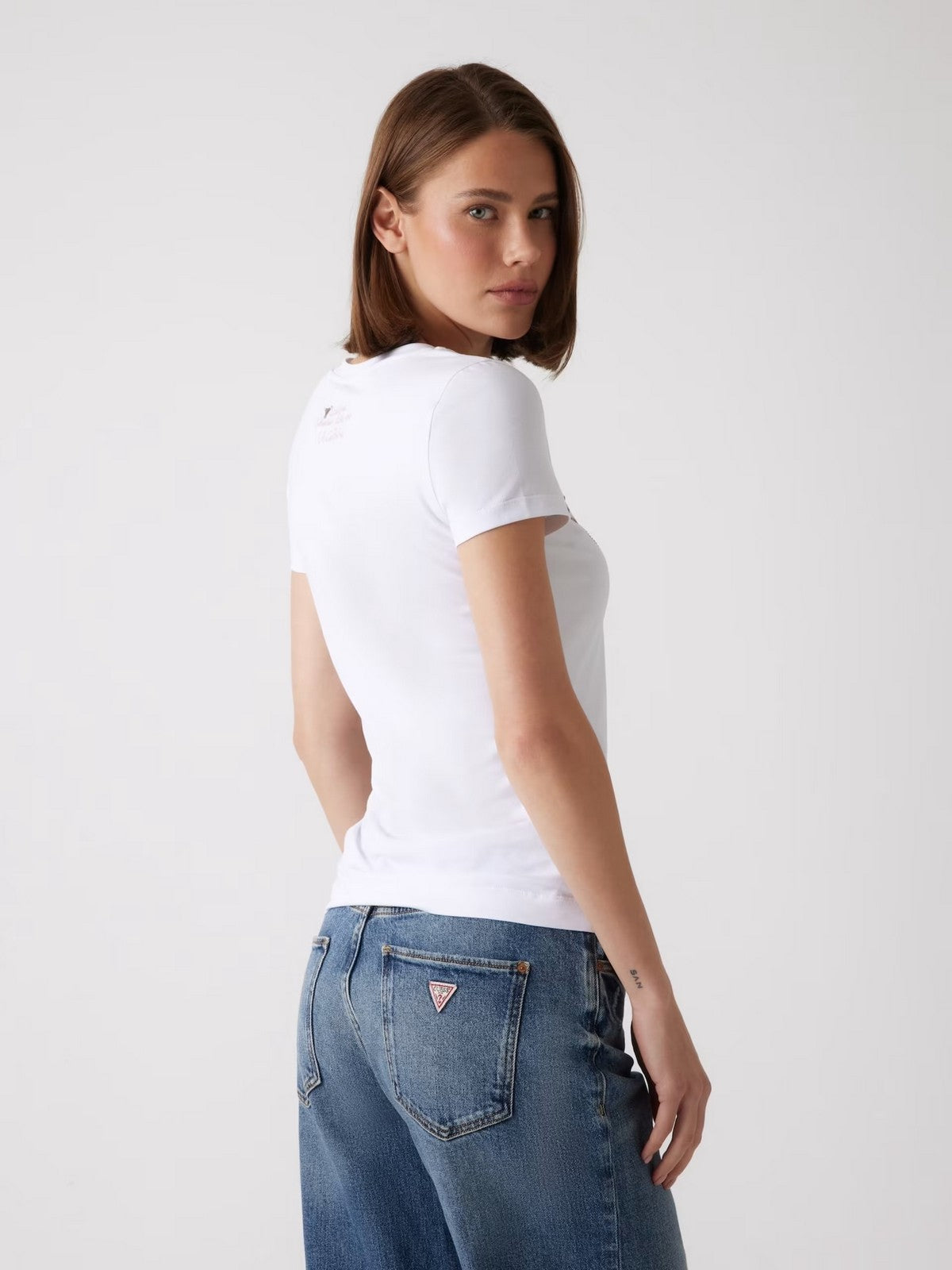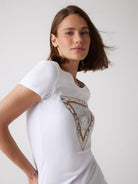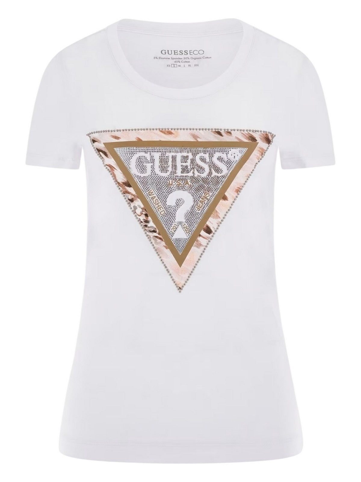 GUESS T-shirt Donna SS CN CHEETA LOGO TRIANGLE TEE W5RI22 J1314 G011 Bianco