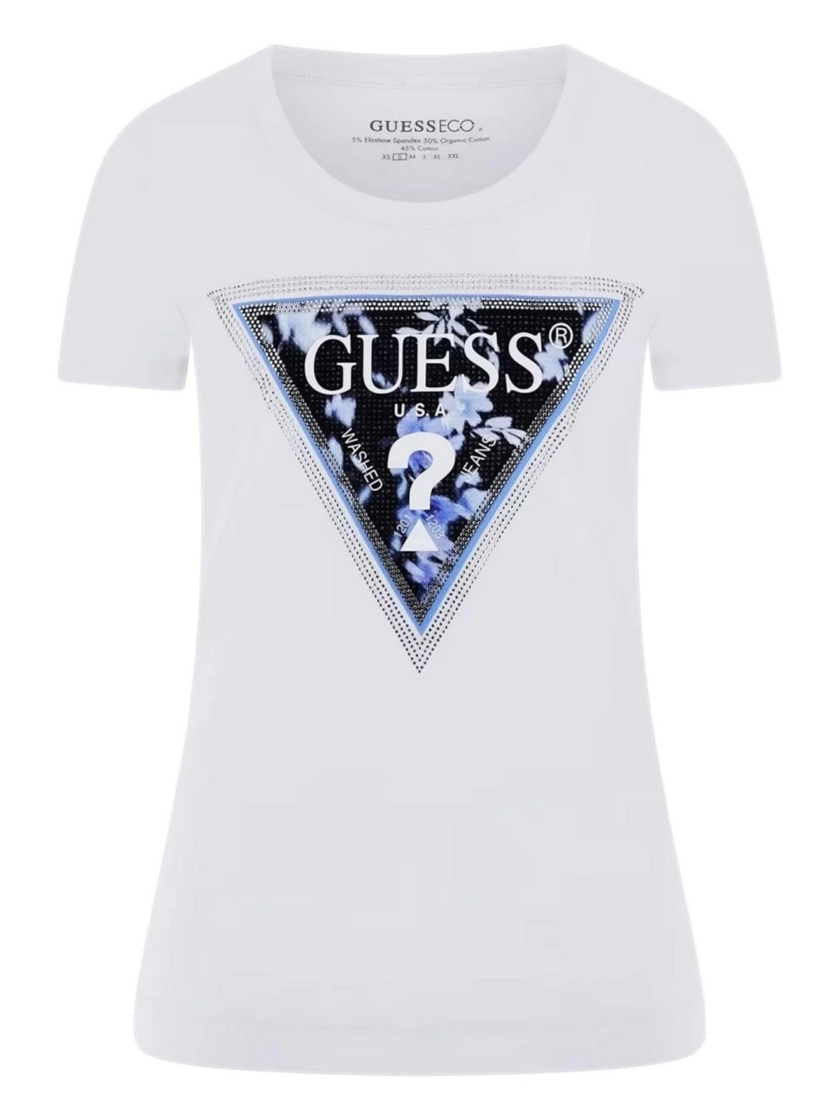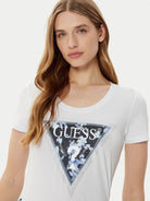 GUESS T-shirt Donna SS CN TRIANGLE FLOWER TEE W5RI00 J1314 G011 Bianco