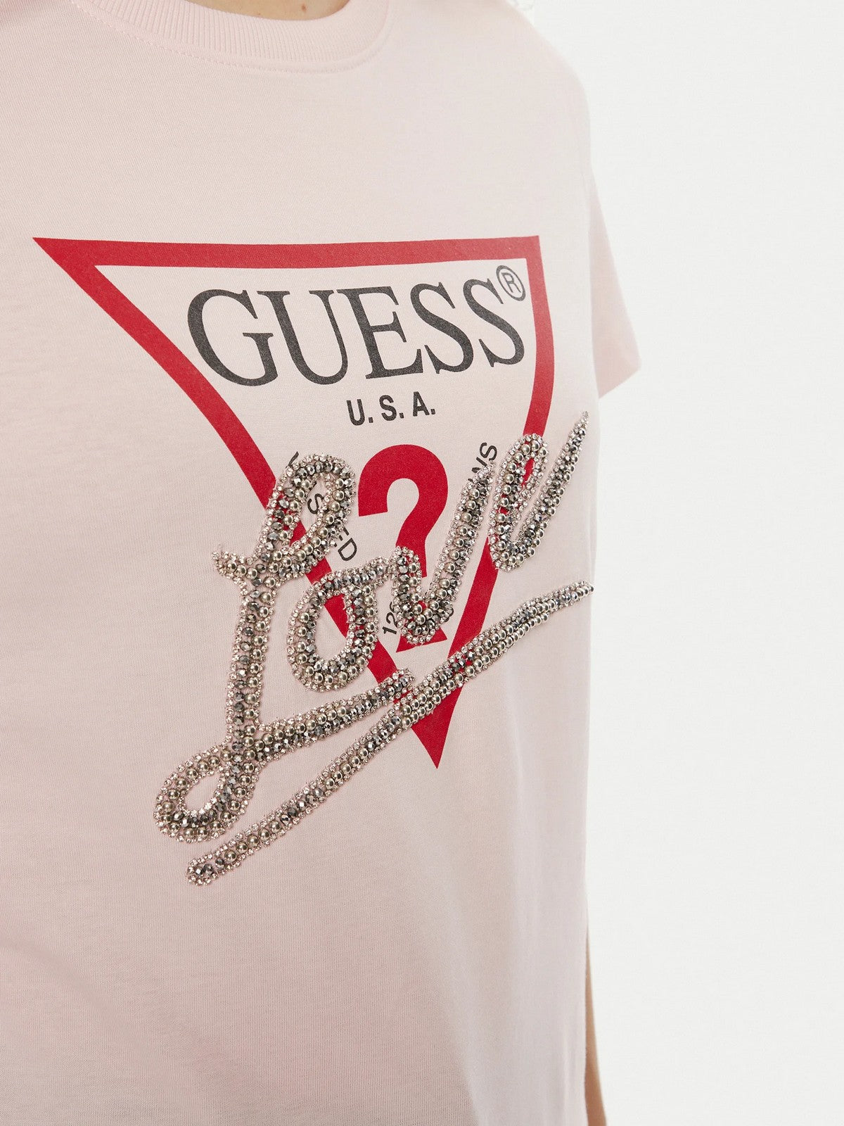 GUESS T-shirt Donna SS CN TRIANGLE LOVE TEE W5RI10 I3Z14 A60W Rosa