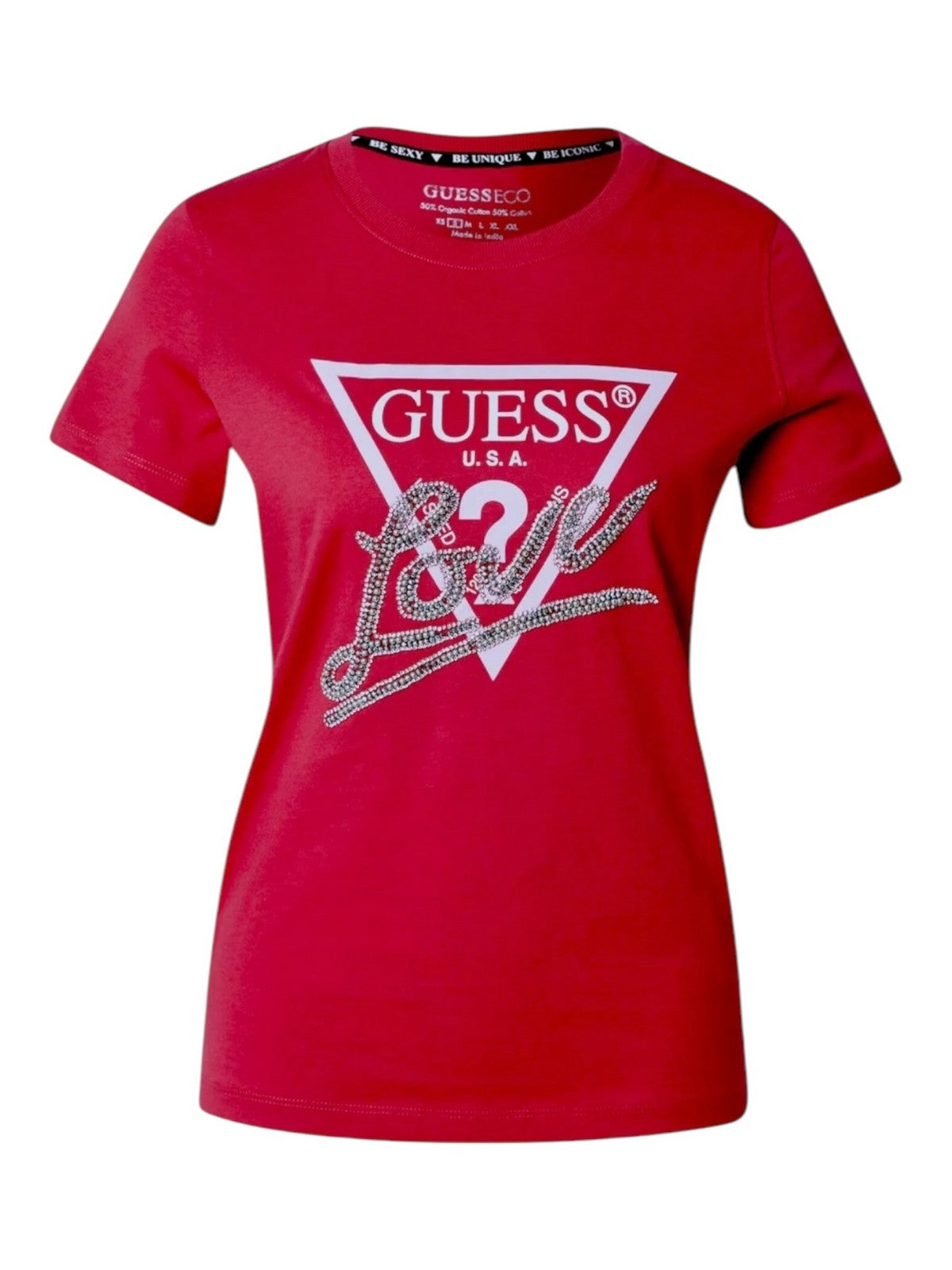 GUESS T-shirt Donna SS CN TRIANGLE LOVE TEE W5RI10 I3Z14 G574 Rosso