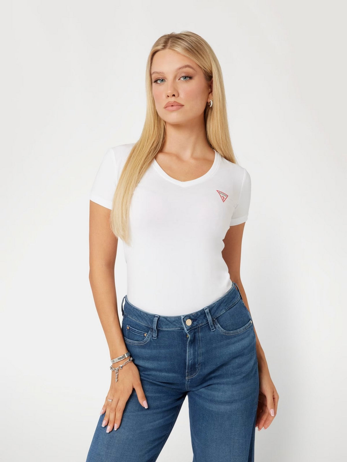 GUESS T-shirt Donna SS VN MINI TRIANGLE TEE W2YI45 J1314 G011 Bianco