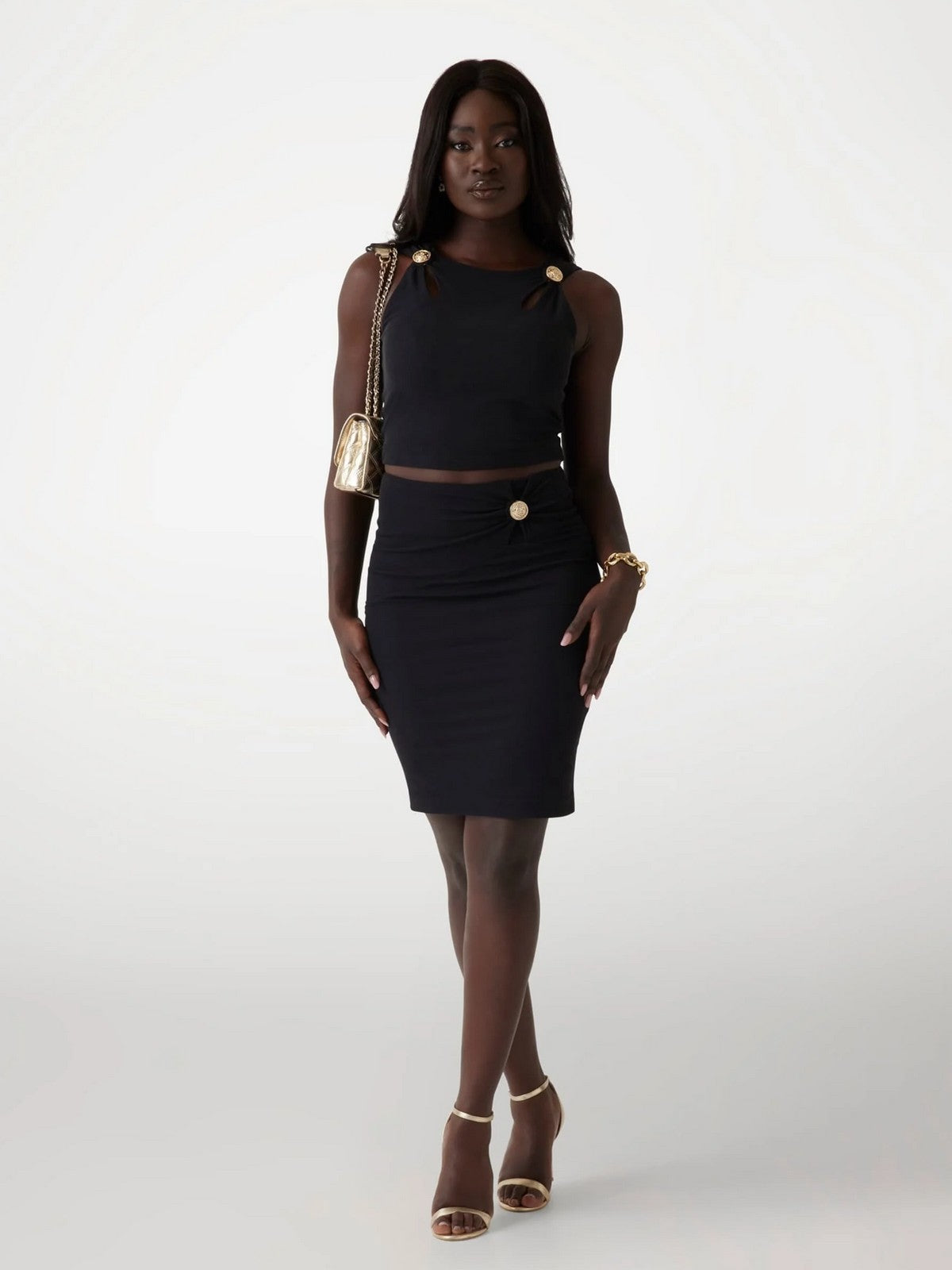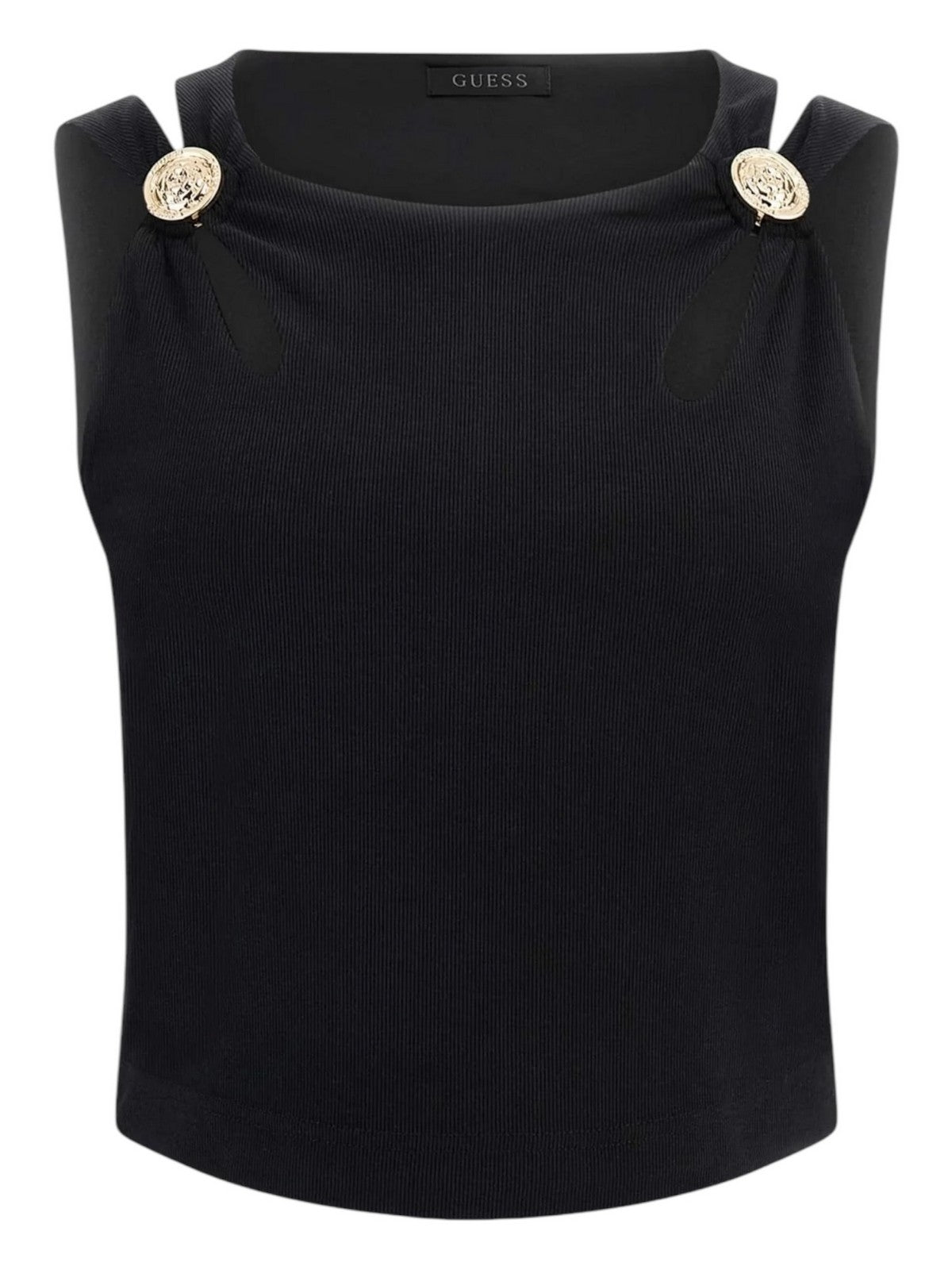 GUESS Top Donna ZAMA CUT OUT DETAILS CROP TOP W5RP13 KAQL2 JBLK Nero
