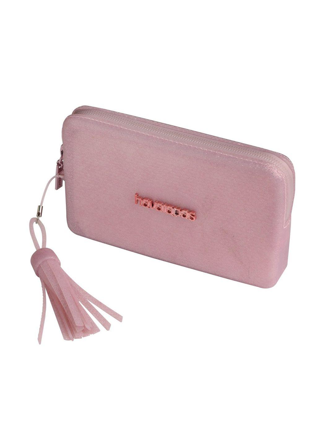 Mini pochette HAVAIANAS in silicone tinta unita glitterato con logo in metallo sul fronte. Chiusura con zip. Cinturino da polso.