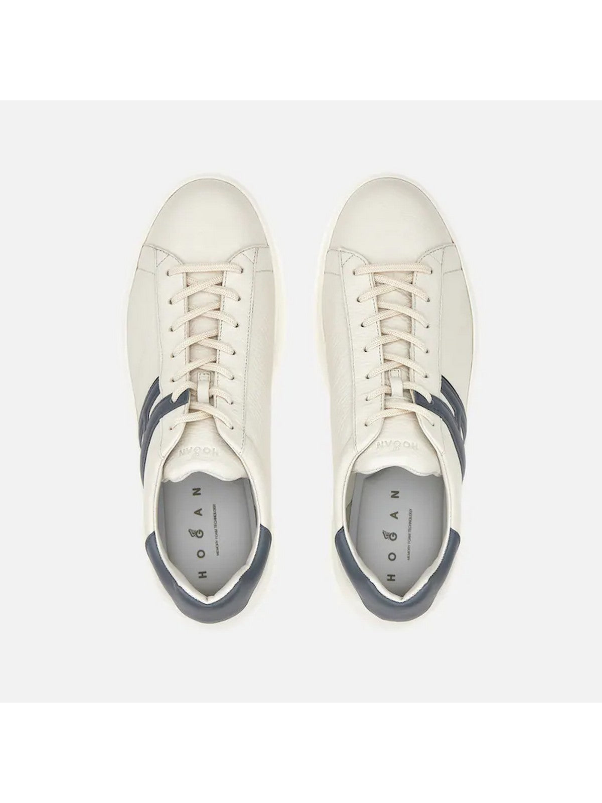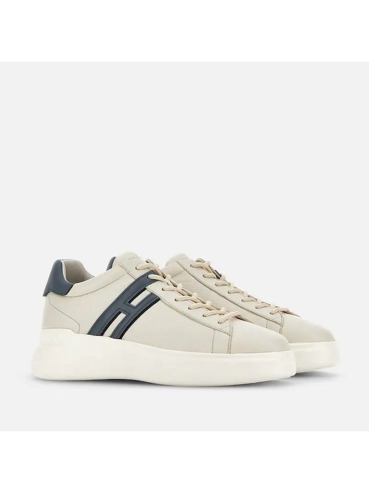 Sneakers H580 HOGAN tomaia in in pelle dalla grana evidente, dalle linee morbide ed essenziali, è lo sfondo di un'H allungata che termina in un passa laccio.