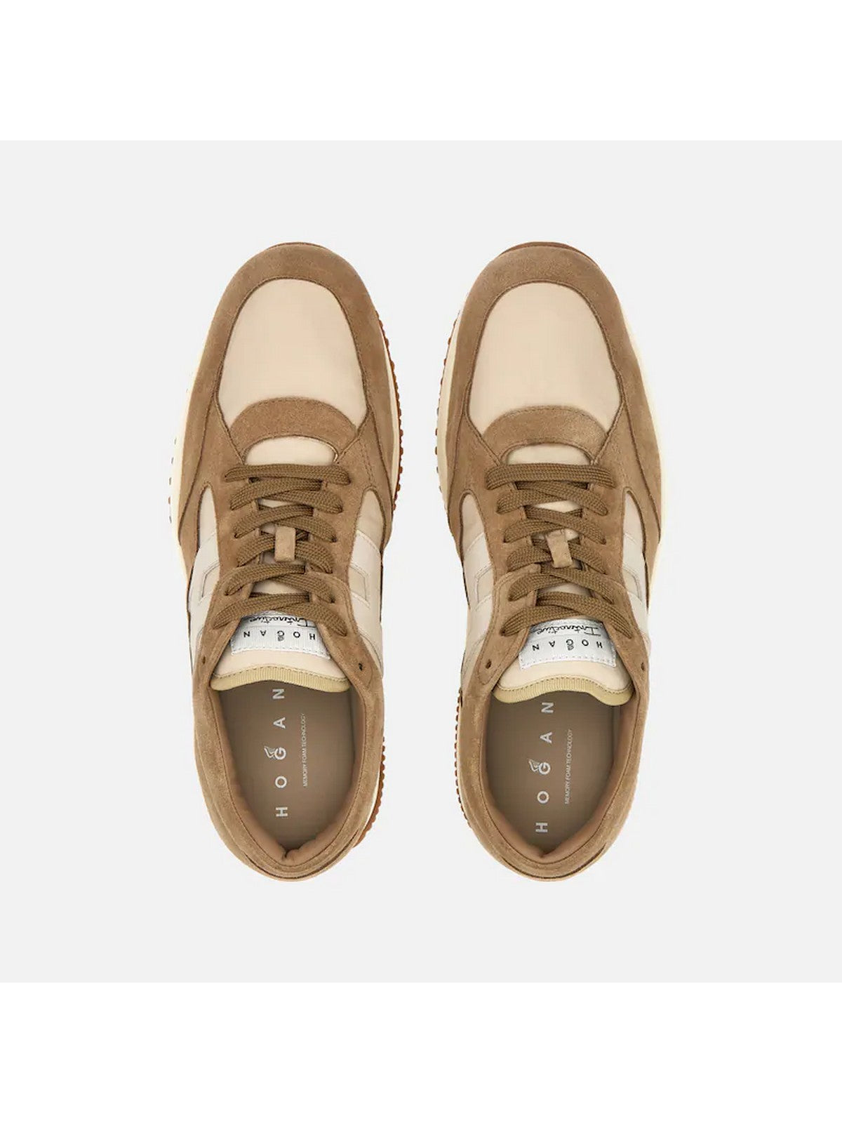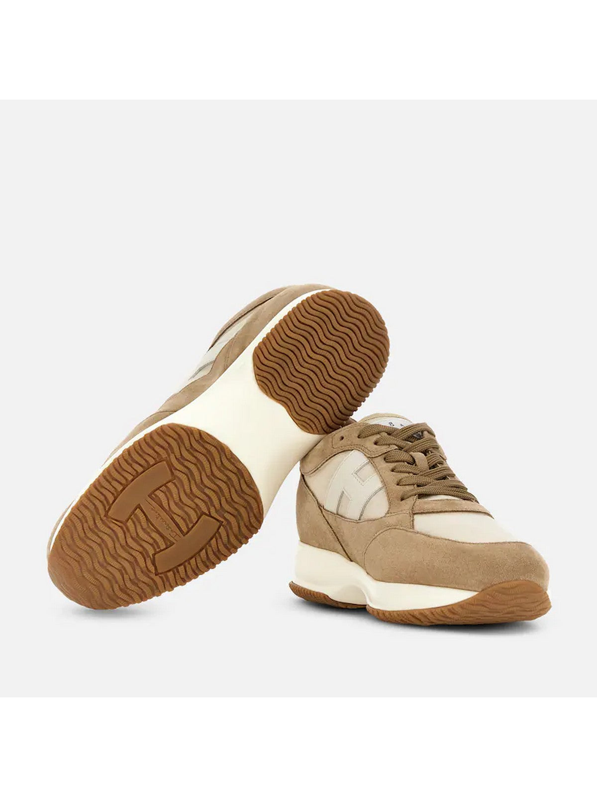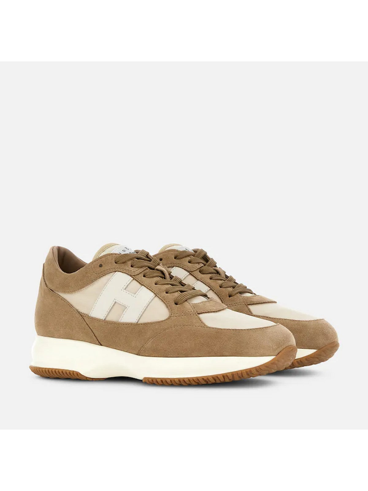 Sneaker Hogan Interactive in pelle scamosciata e tessuto hanno un'H laterale in pelle liscia. Perfette per un look sporty chic, sono completate da una soletta in memory foam.